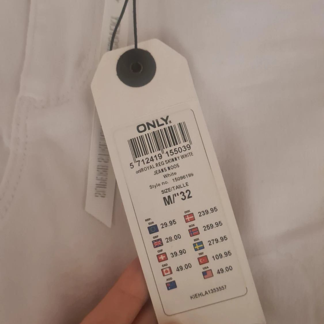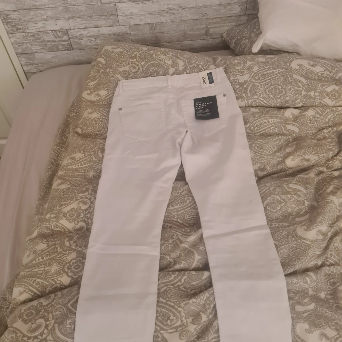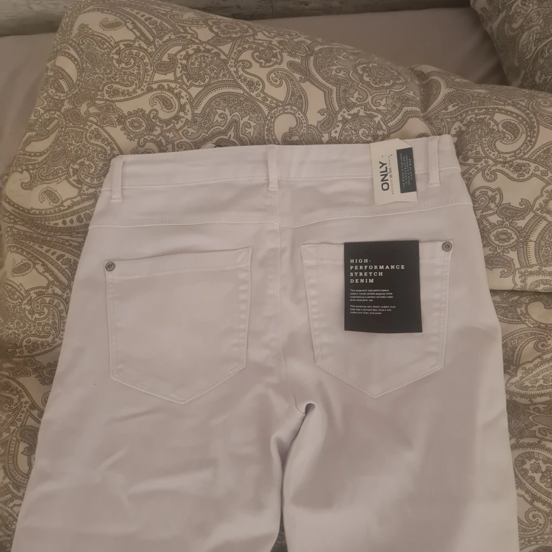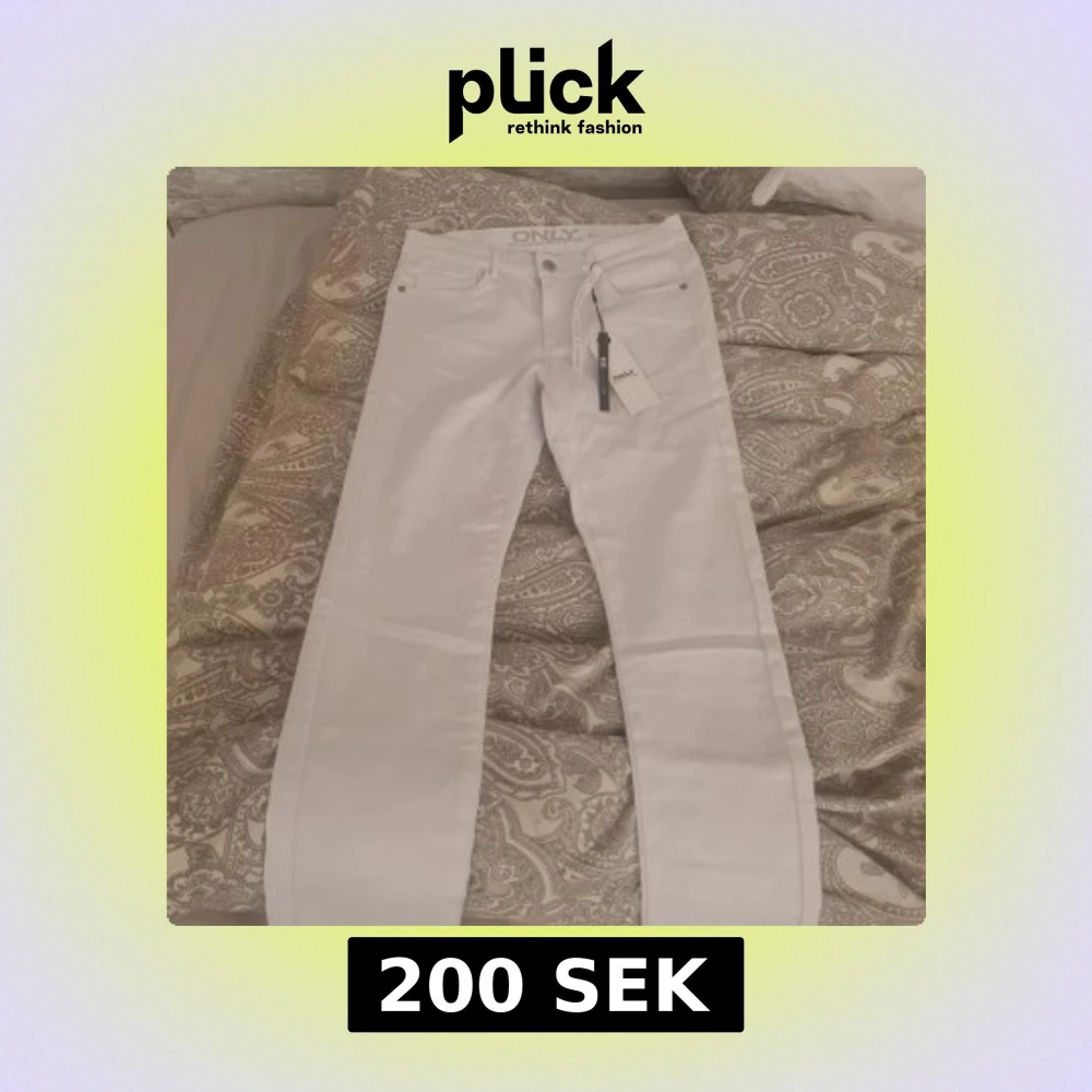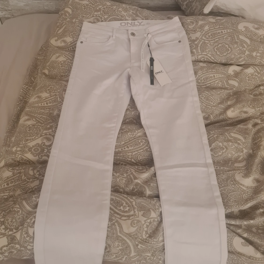 Säljer ett par fräscha vita jeansbyxor från ONLY i modellen Royal Jeans Skinny White. Byxorna har klassisk femficksdesign, raka ben och normal passform. Perfekta att styla med sneakers eller boots för en clean look.