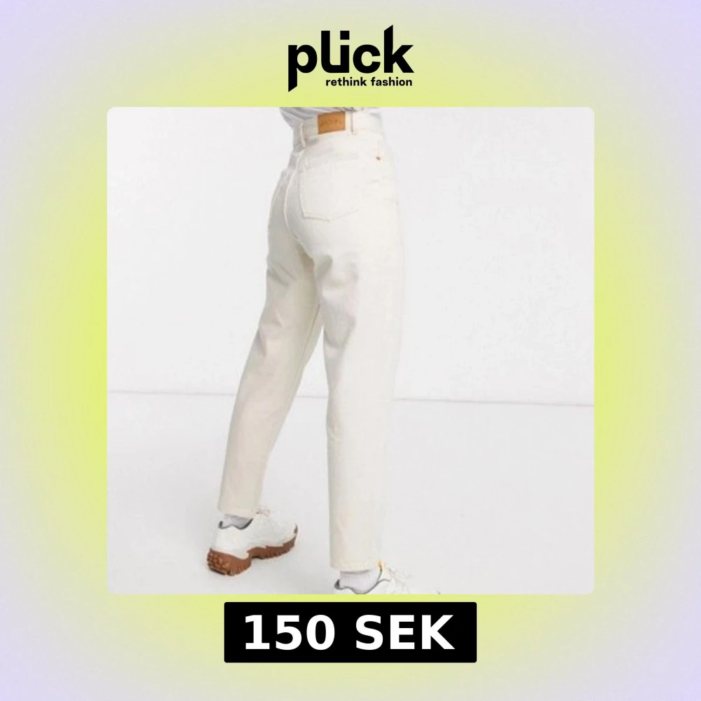 Snygga vita jeansbyxor i 100% bomull. De har en klassisk design med hög midja och balloon leg. Perfekta för en stilren look. Modellen är Taiki från Monki.