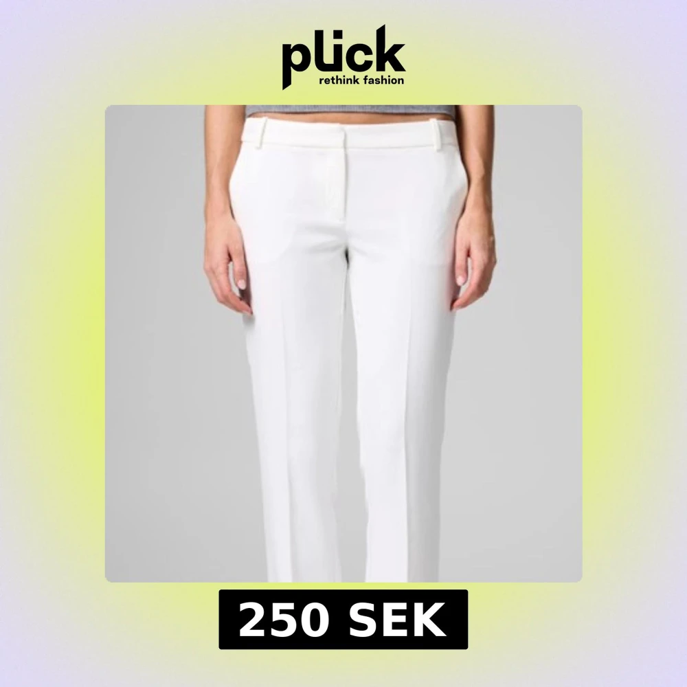 Snygga vita kostymbyxor med pressveck. Byxorna har bälteshällor, diskreta sidofickor och stängs med dragkedja och knapp. Perfekta för en clean och stilren look, passar till både skjorta och t-shirt. Dom är ifrån BikBok.