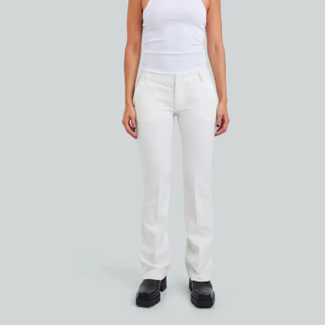 Snygga vita kostymbyxor med normal passform och raka ben. Byxorna har låg midja och klassisk design med fickor fram. Modellen heter Vera. Perfekta att styla med både topp och skjorta.