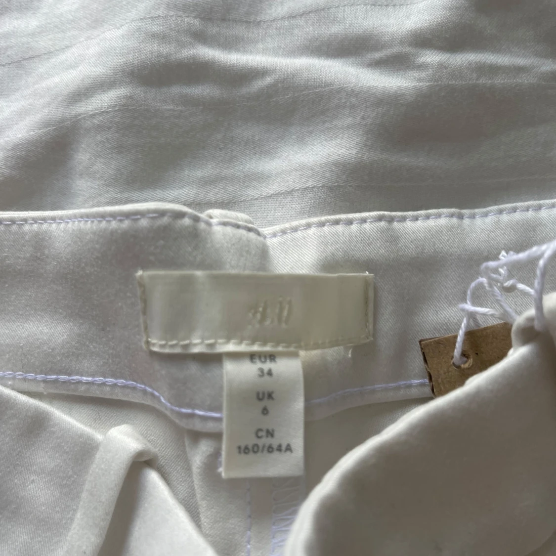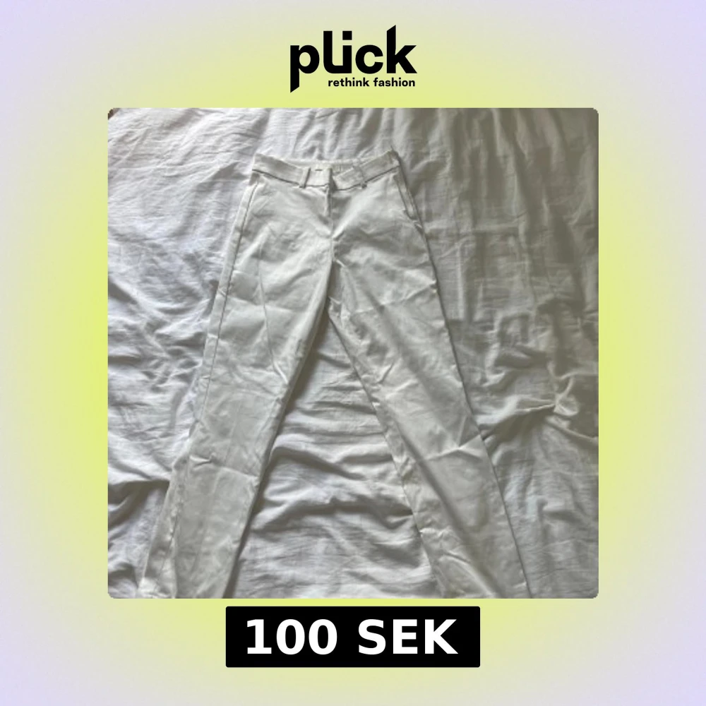 Snygga vita kostymbyxor från H&M i storlek 34. Byxorna har raka ben, bälteshällor och diskreta fickor bak. Perfekt för en clean och fräsch look. Materialet känns mjukt och har en lätt glans, vilket ger en stilren vibe.