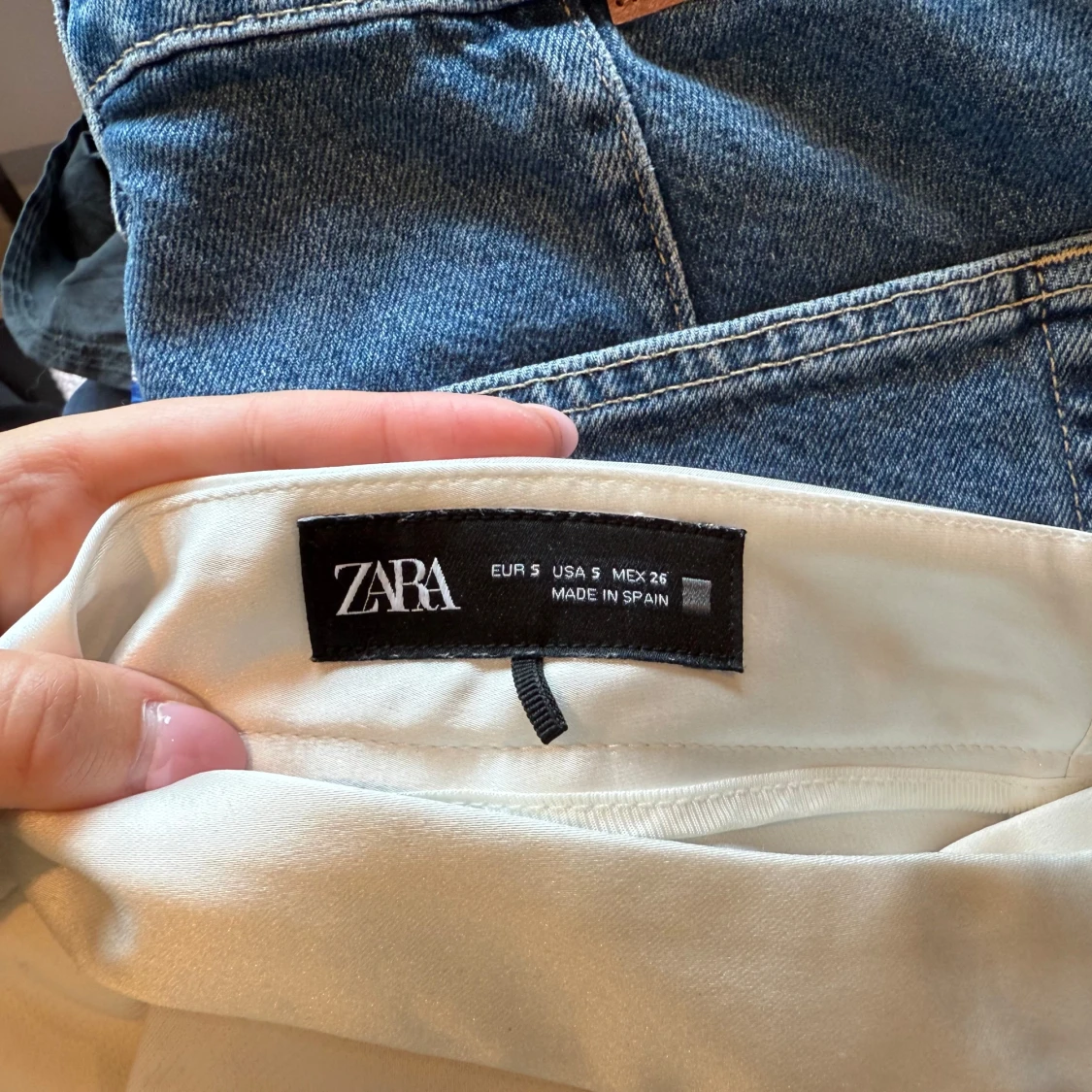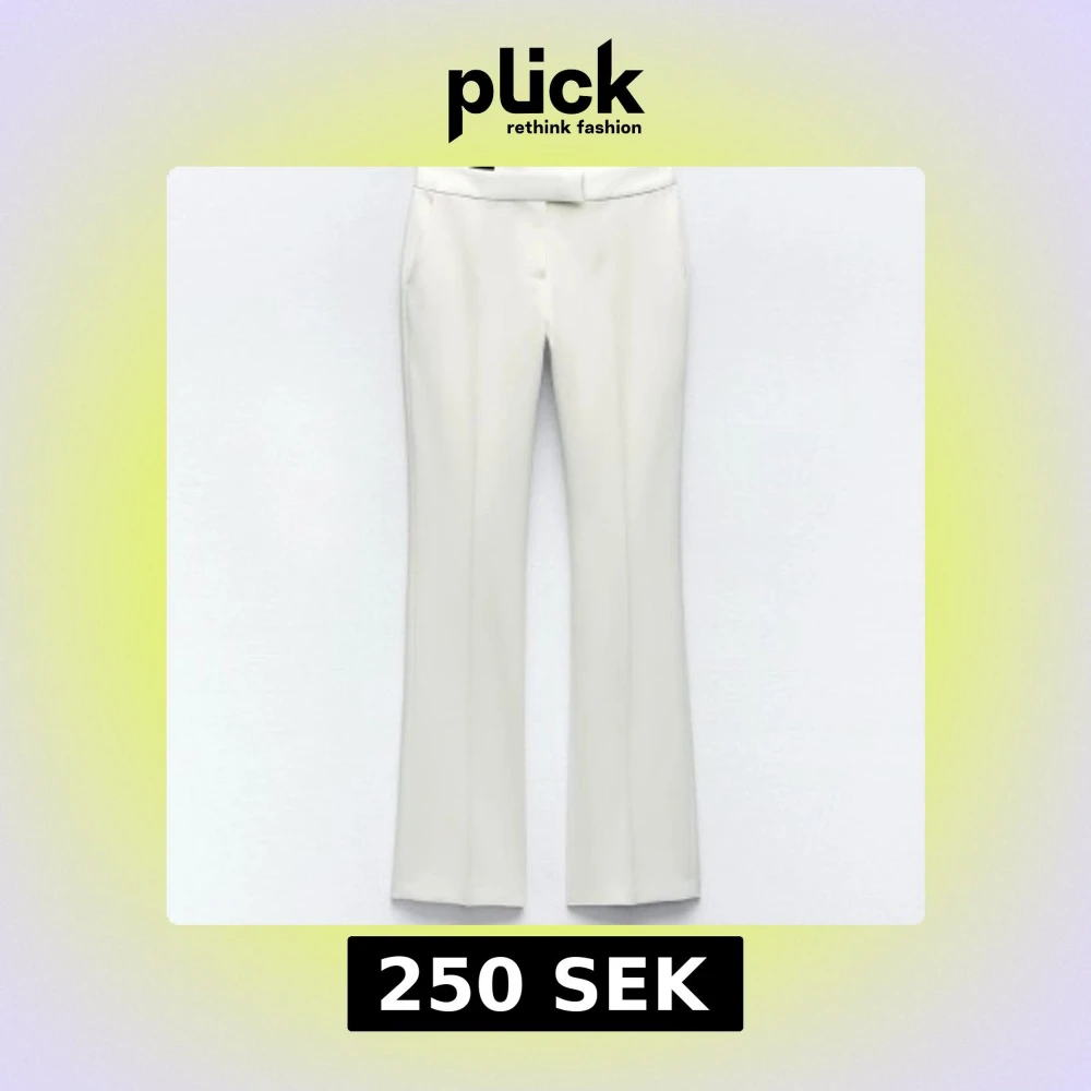 Snygga vita kostymbyxor från Zara i storlek S. Byxorna har raka ben med lätt bootcut och diskreta fickor i sidorna.