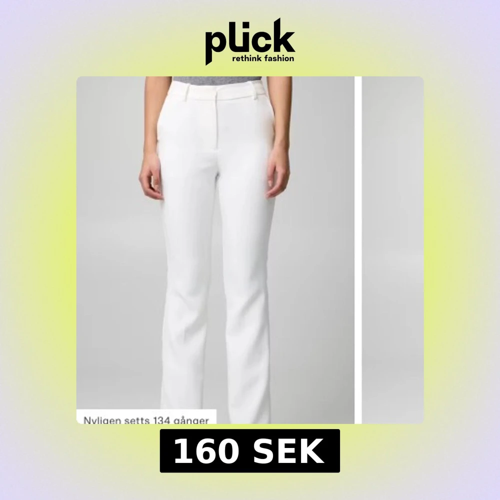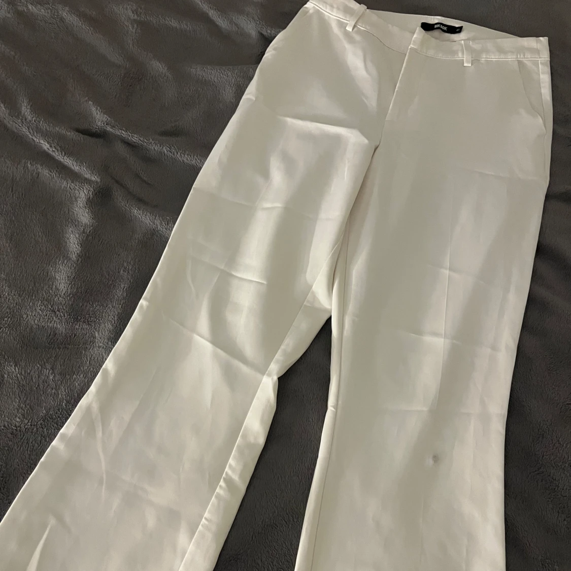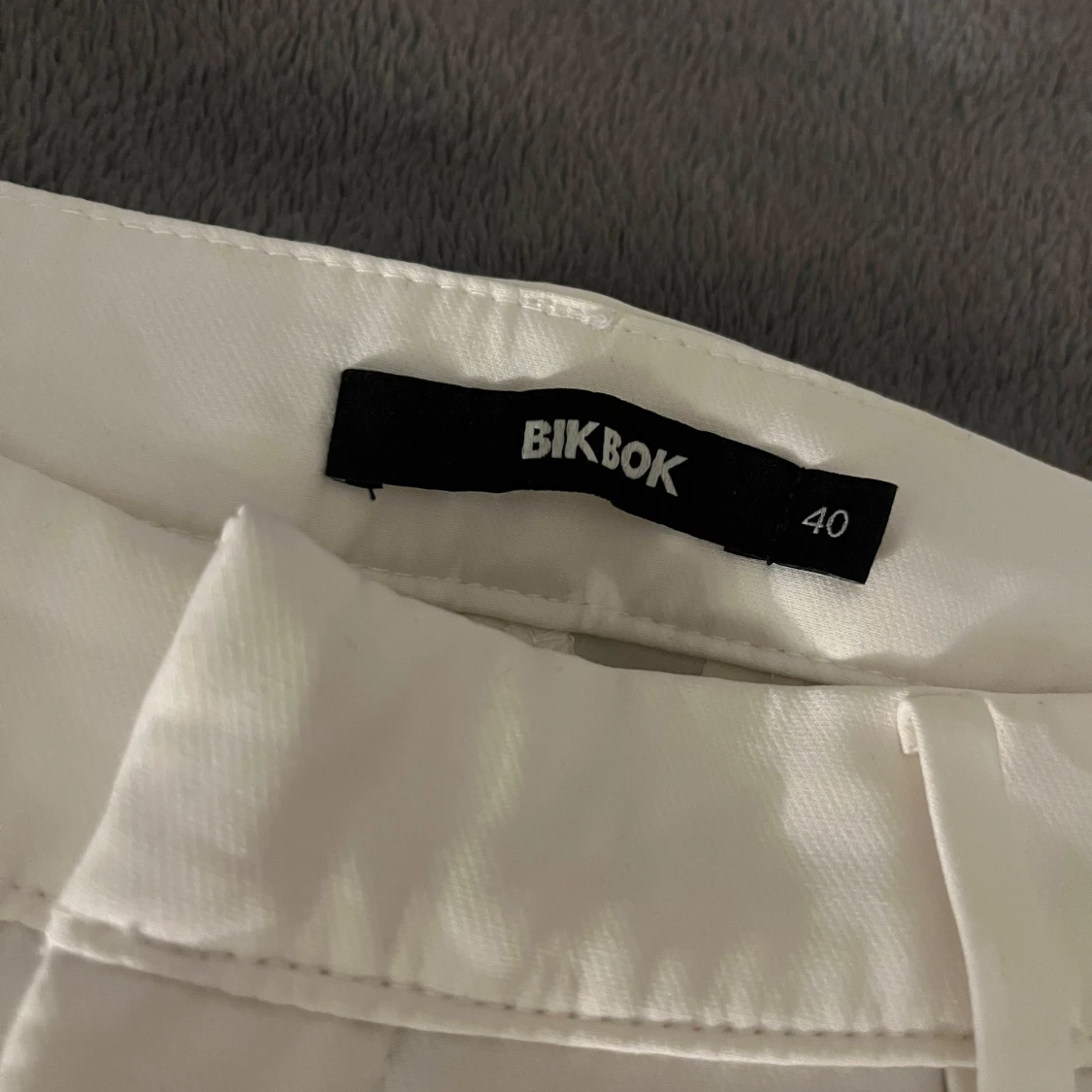 Vita kostymbyxor från Bikbok i storlek 40. De är högmidjade och i modellen ”Vilma”. Det finns en liten grå fläck vid ena knät. Nypris 499kr