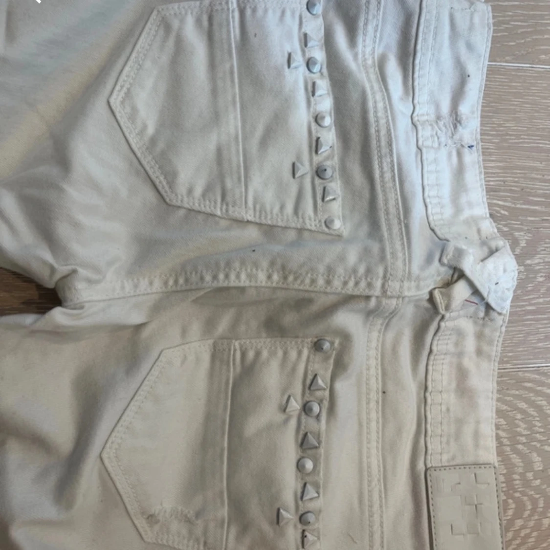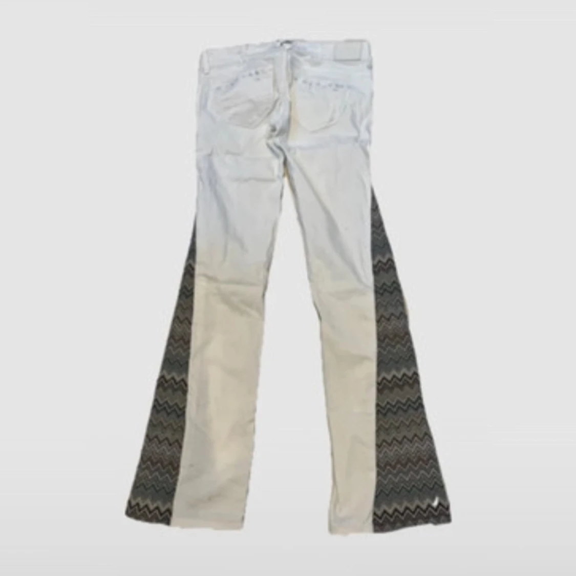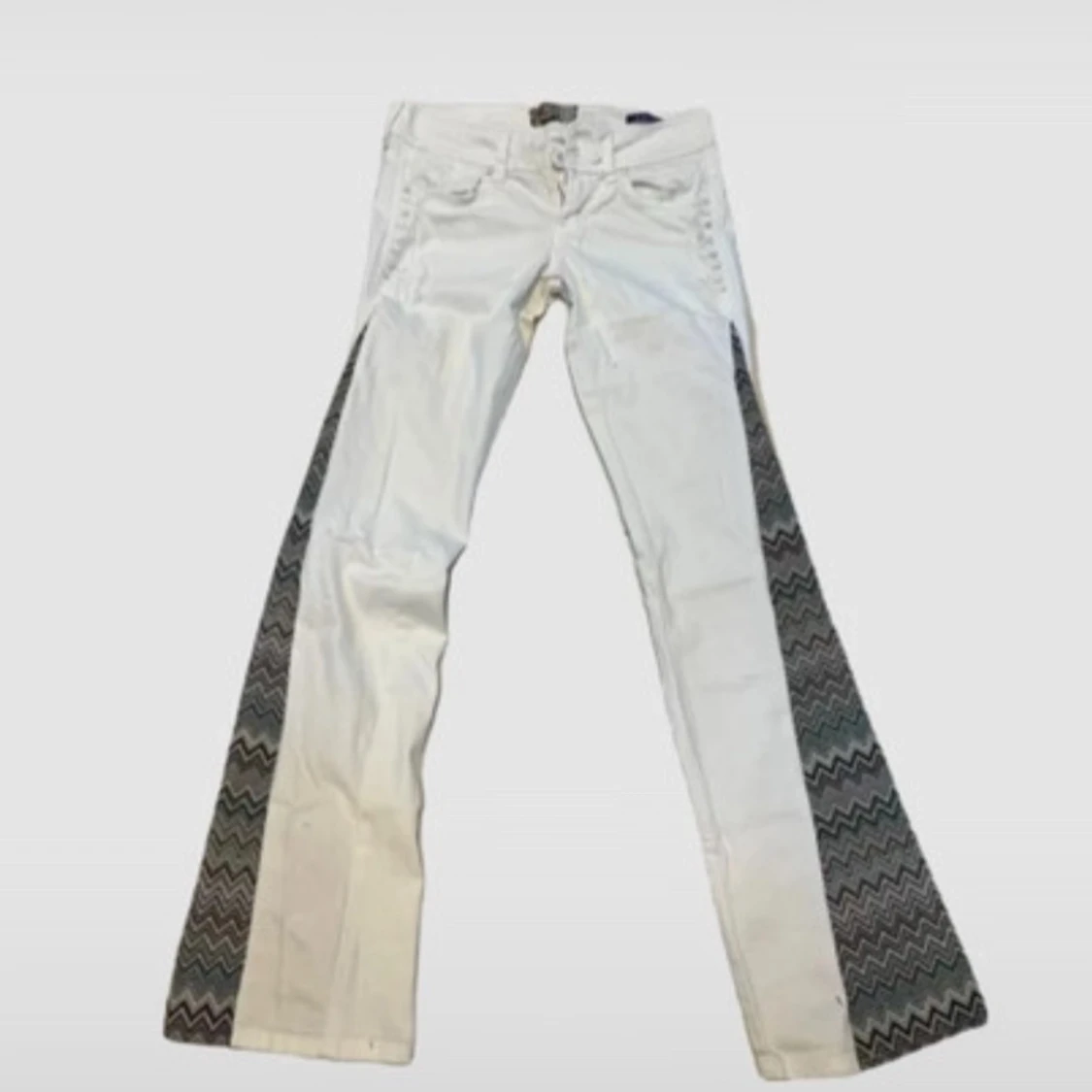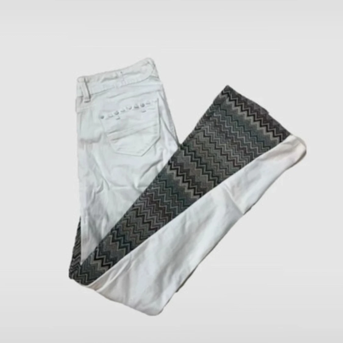 Supersnygga lågmidjade vita butcut jeans med missoni mönster på sidorna! Passar xs/s💞