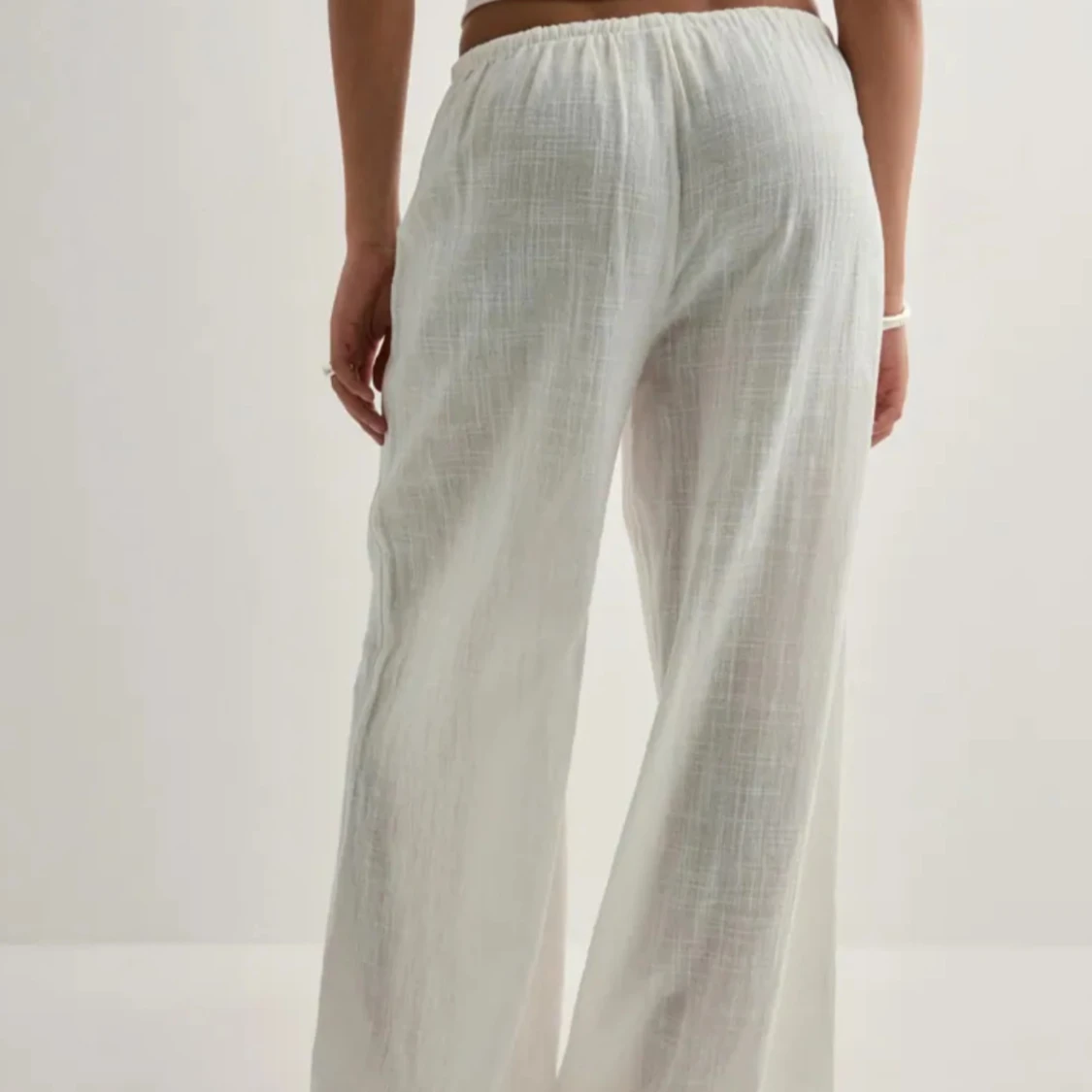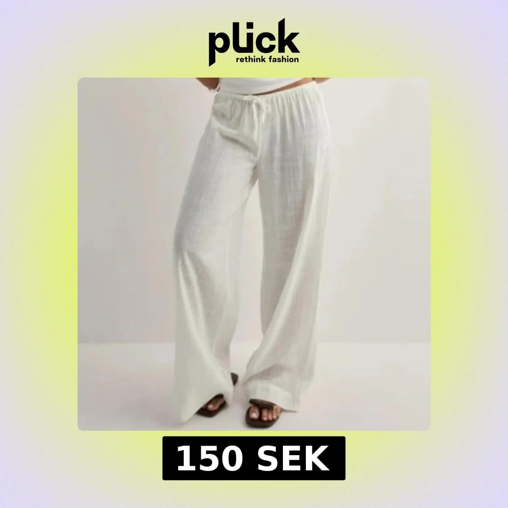 Säljer ett par luftiga lågmidjade linnebyxor. Byxorna har en avslappnad passform och är jätte sköna. Dom är aldrig använda, prislapp sitter kvar 🥰