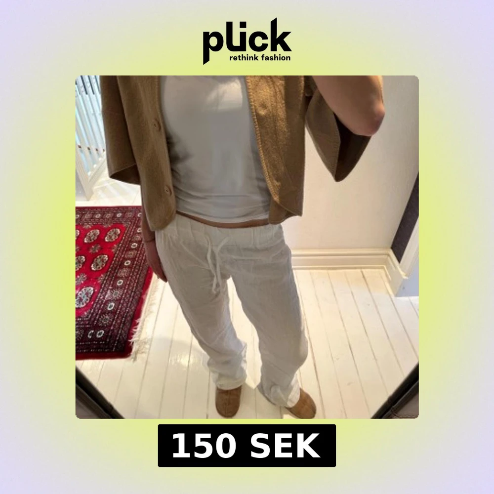 Vita Lågmidjade kostymbyxor från A-Design. Har inte strykt dem. Onesize men skulle säga passar 34-40 beroende på hur man vill att de ska sitta. Spårbar frakt PostNord tillkommer på 67kr
