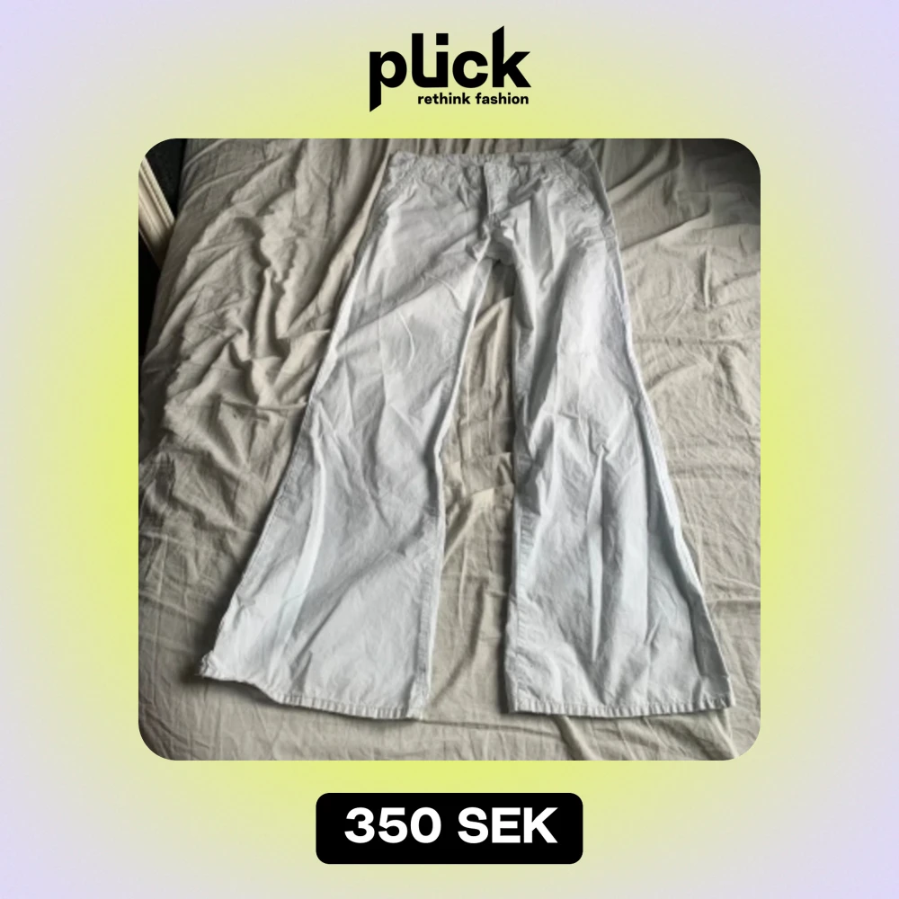 Vita Lågmidjade utsvängda byxor från märket Lucky Brand. Fint skick, 100% bomull. Midjemått 40cm mätt rakt över och innerbenslängd 82cm.