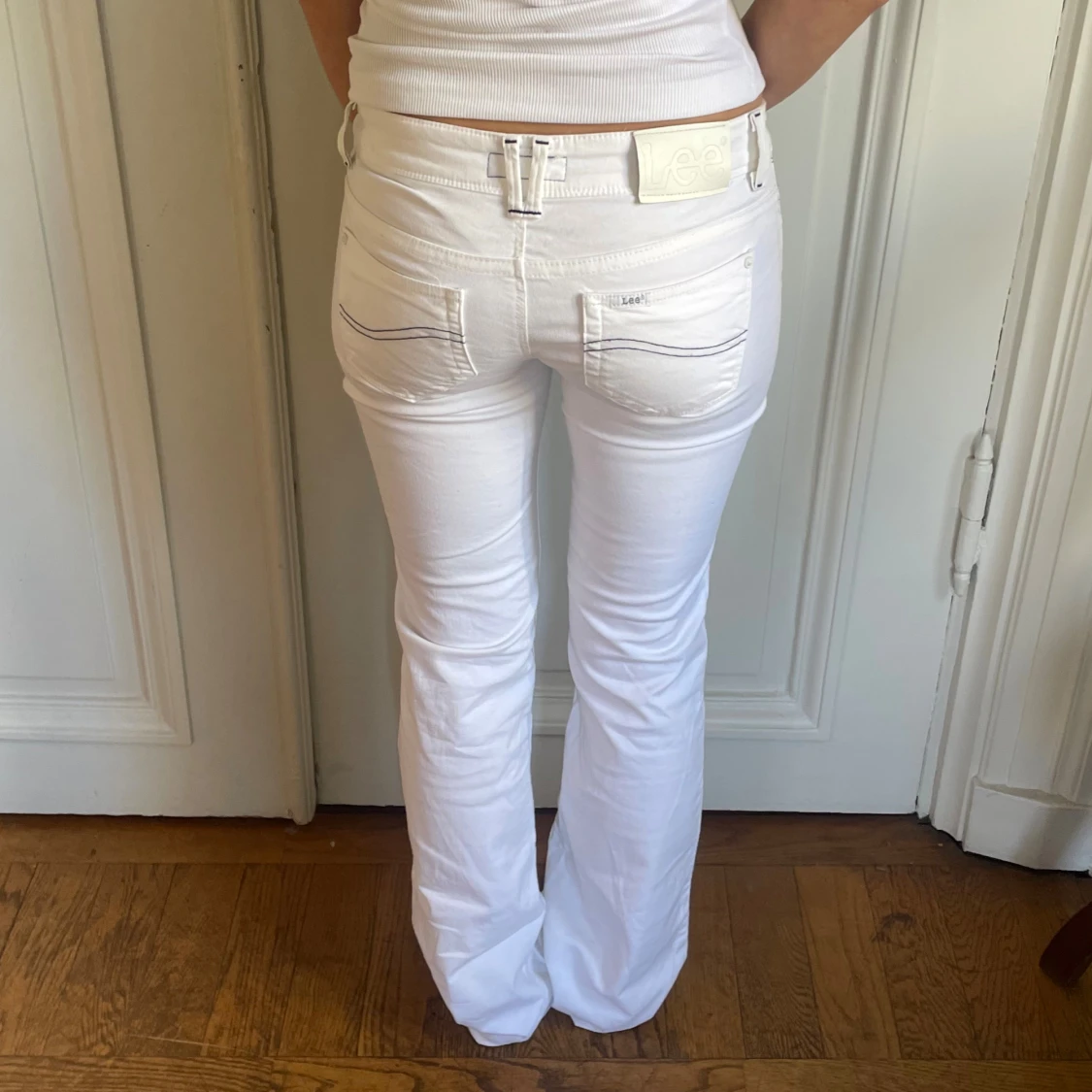 Intressekonll!!Vita lee jeans midjemått: 37,5, innerbens längd 73cm