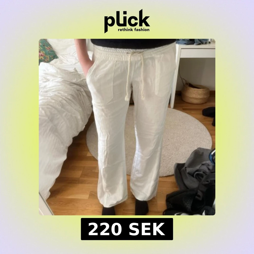 Snygga vita linnebyxor som är perfekta till sommaren. Tyvärr lite för små för mig o därför säljer jag dom