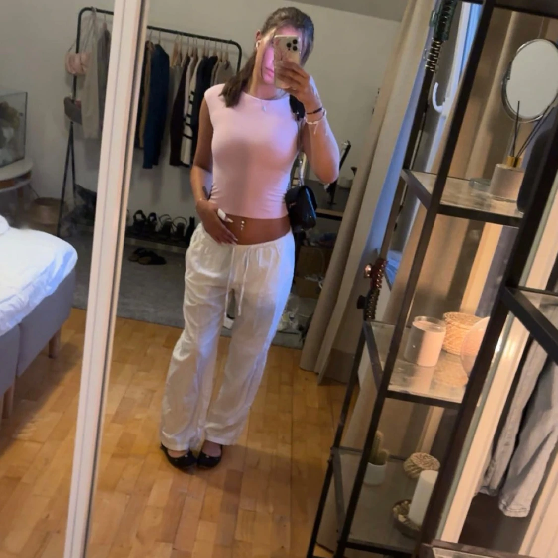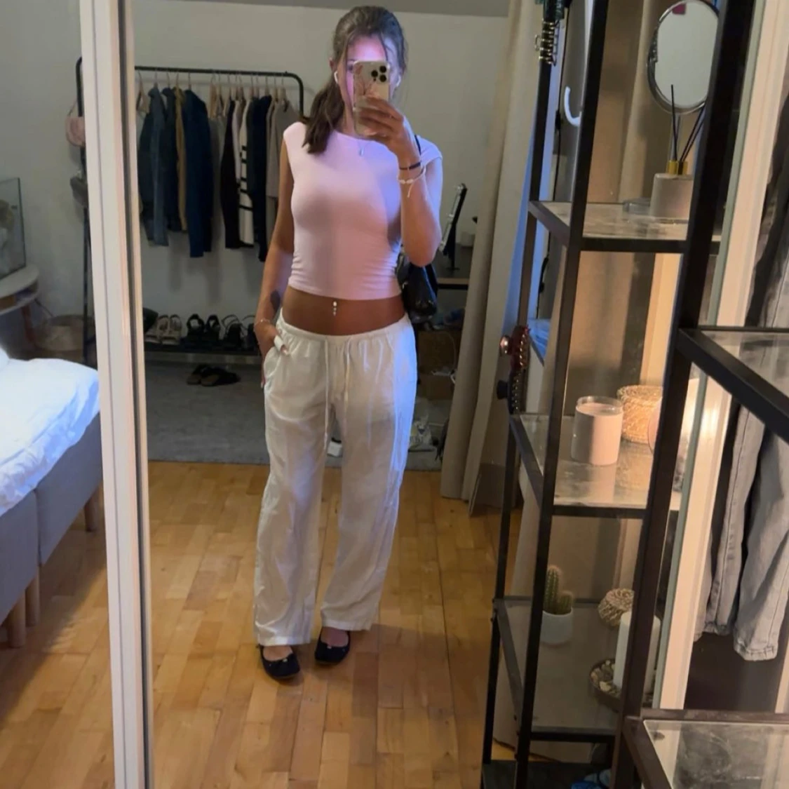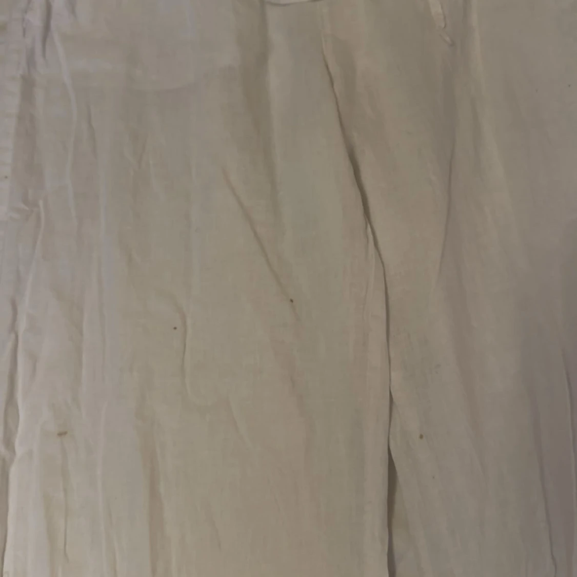 Är knappt använda men har små fläckar på benen, se bild 4. Jag skulle tro att fläckarna går bort i tvätten, dock ingenting man lägger märke till när dom sitter på! 🌺 Kolla gärna in min profil för bundle-rabatt🥰