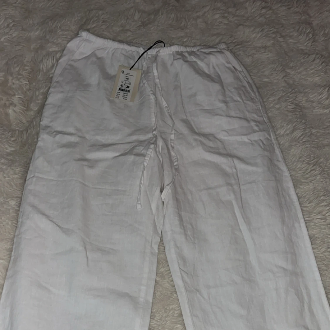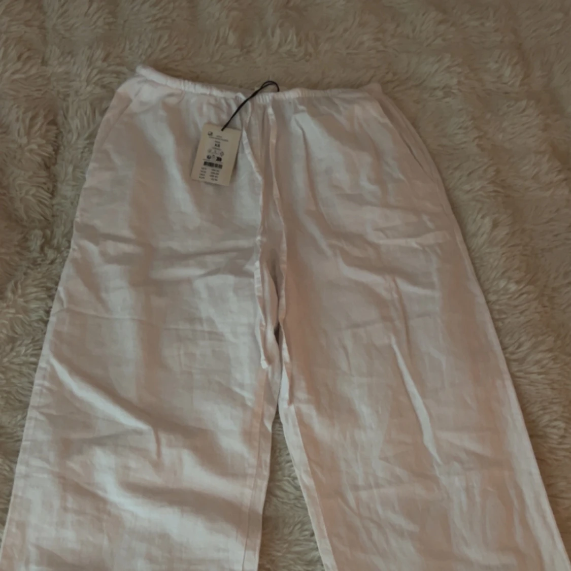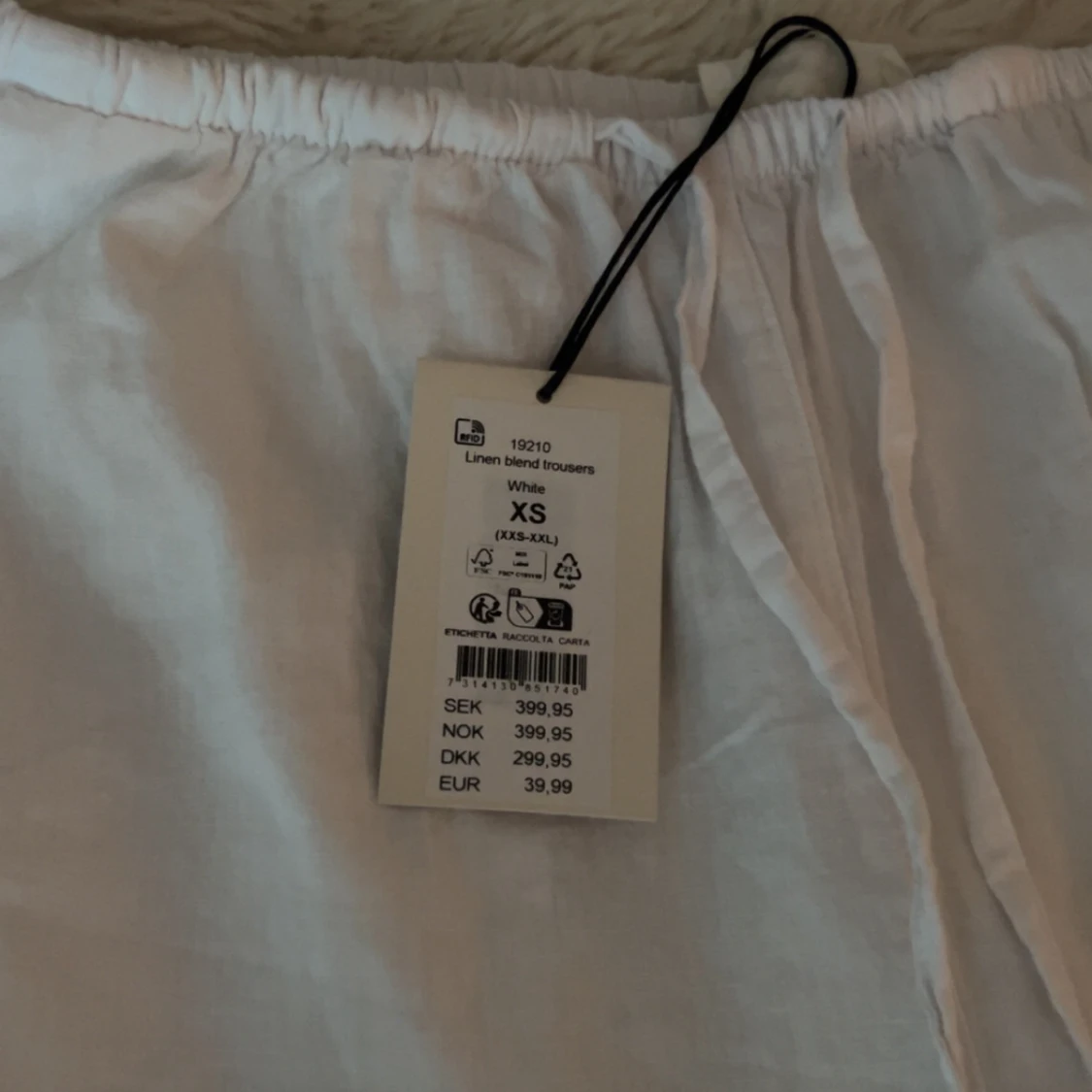 Vita linnebyxor i storlek XS, men är stora i storleken så mer som en S. Helt nya, lagom för mig som är 163 cm. Säljer då jag råkade köpa 2 par, 400kr nypris. Säljer för 200kr 🌸