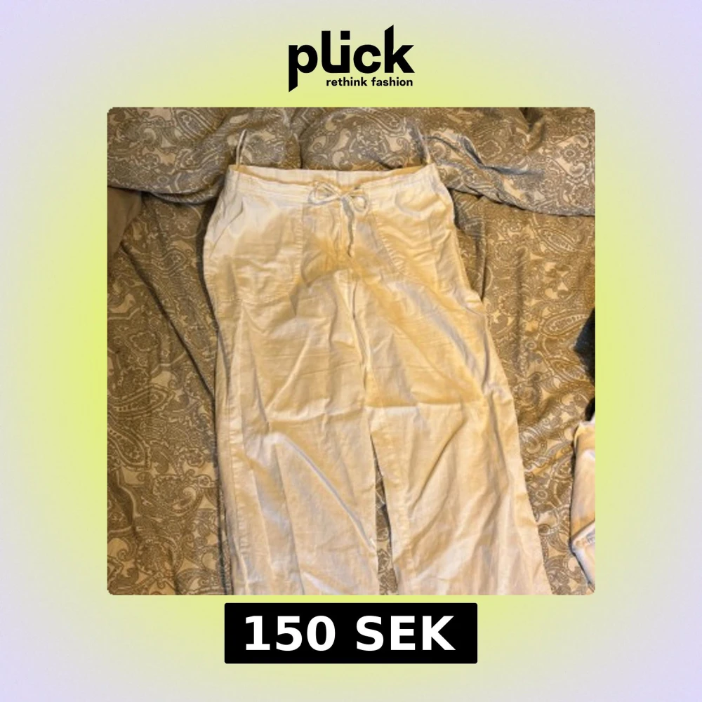 Säljer ett par vita linnebyxor från bpc. Byxorna har en avslappnad passform med dragsko i midjan för justerbarhet. Sköna och följsamma. Storlek 38