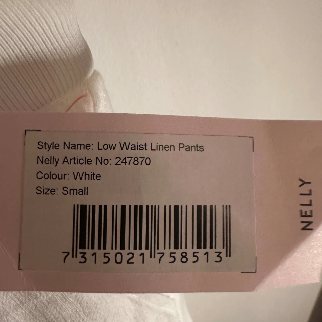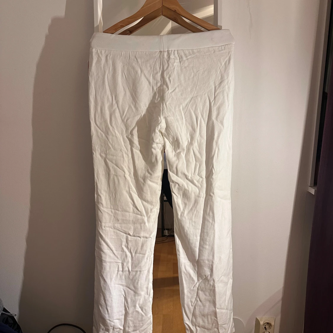 Snygga vita linnebyxor från Nelly med låg midja ochs raka ben. Byxorna har resår och snörning i midjan för en skön passform, med dubbellager i byxan. Helt oanvända med prislapp på.