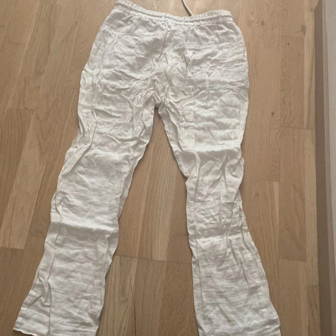 Snygga och luftiga vita linnebyxor från Zara i storlek S. Byxorna har rak passform, resår i midjan och dragsko för extra komfort. Perfekta för varma dagar när du vill ha en chill och stilren look.