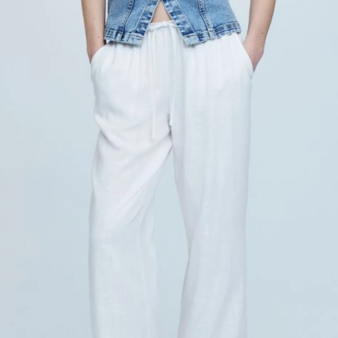 Säljer mina fina jättepopulära lågmidjade linnebyxor från hm💕 säljer då de är för små för mig, storlek xxs💕 jätte fint skick! Inga fläckar osv. Köp direkt för 300kr💕