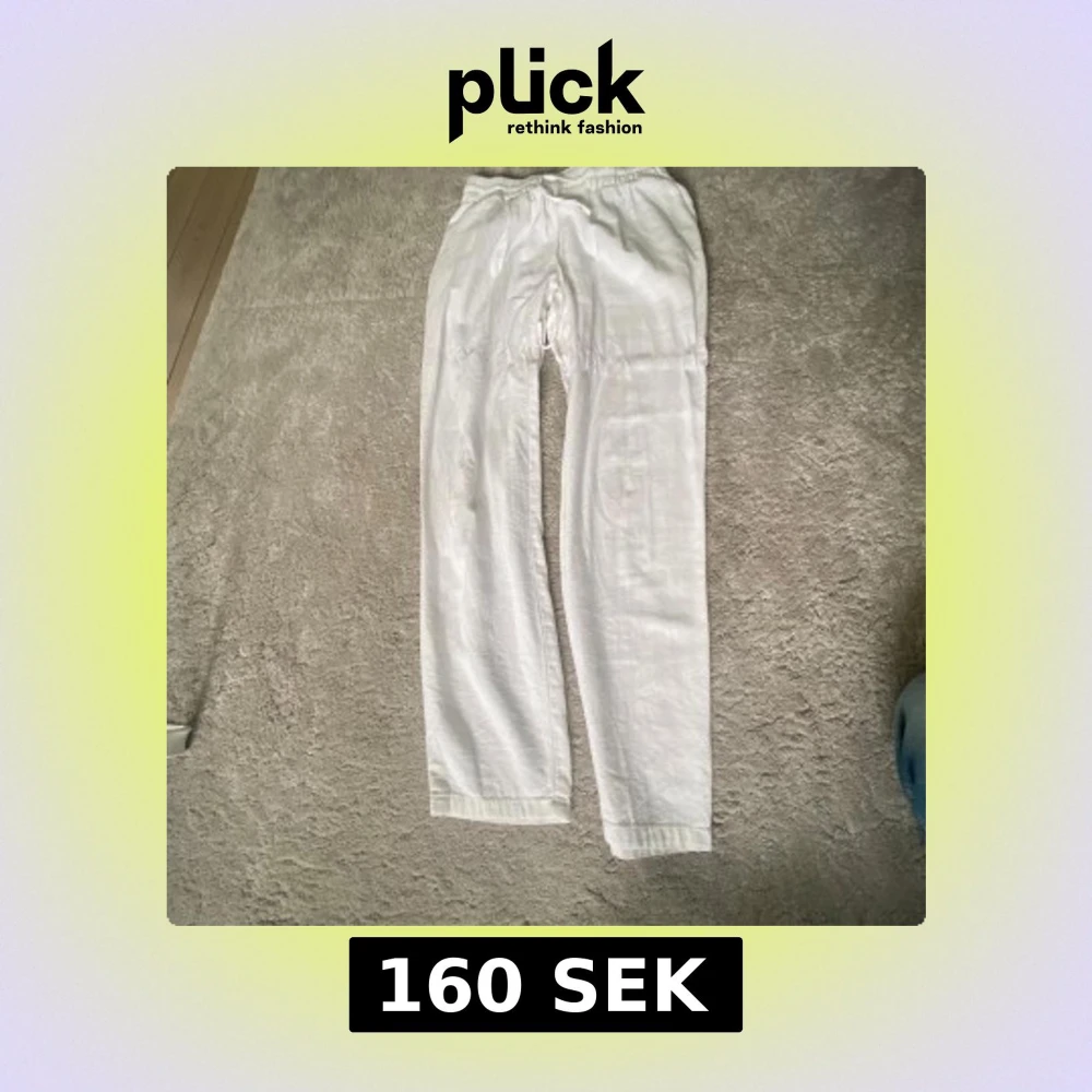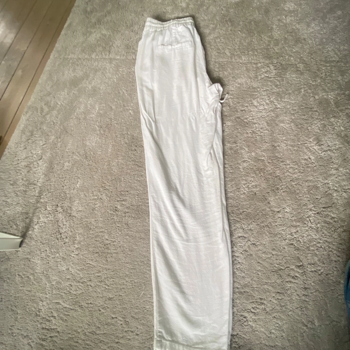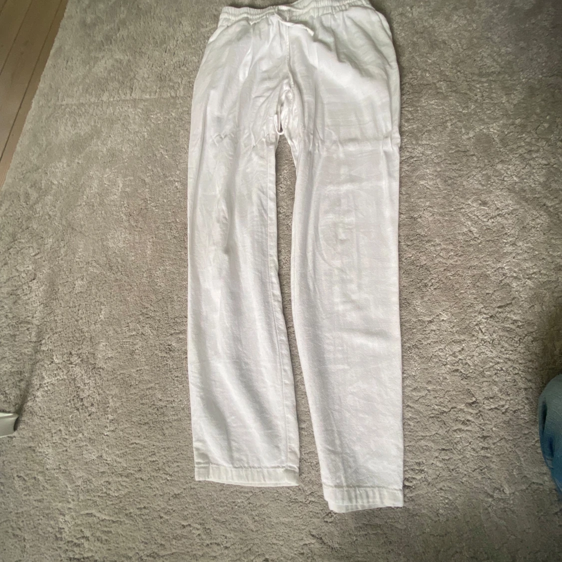 Säljer ett par vita linnebyxor med rak passform och resår i midjan. Byxorna har sidfickor och är perfekta för varma dagar. Lätta och luftiga, passar till många olika stilar.skriv för fler bilder🥰