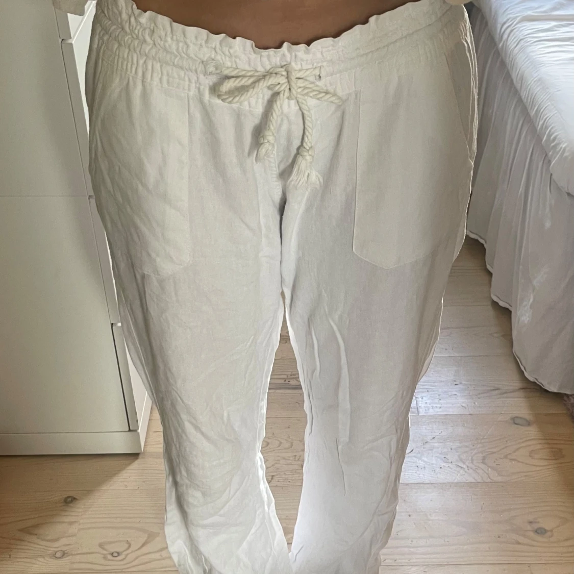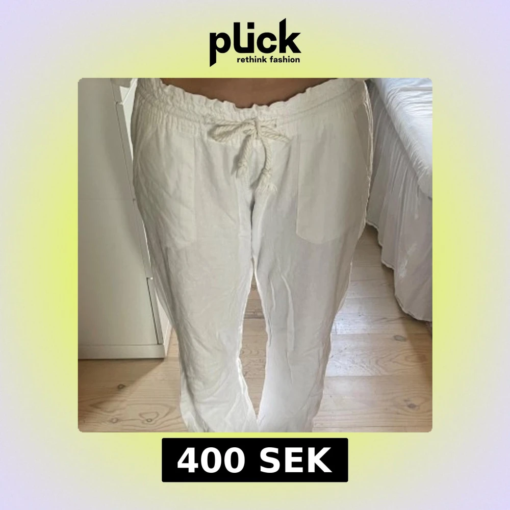 Säljer ett par fräscha vita linnebyxor från Roxy, dom är köpta på Plick men var tyvärr lite för stora. Dom är i superfint skicka och knappt använda.💕💕
