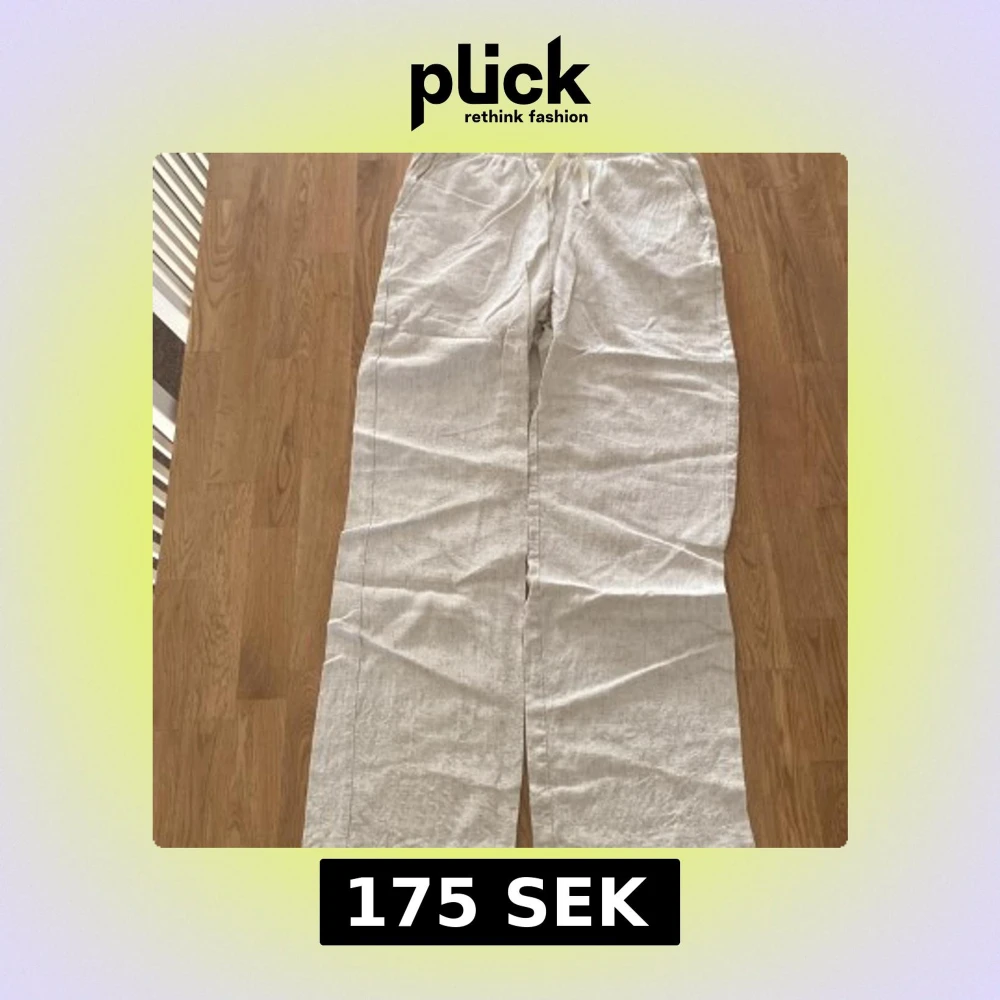 Snygga och bekväma vita linnebyxor med snörning i midjan. Perfekta för en avslappnad stil med en luftig passform. Byxorna har en rak design och är tillverkade i ett lätt och andningsbart material. Storlek Large i ubgdomsstolek