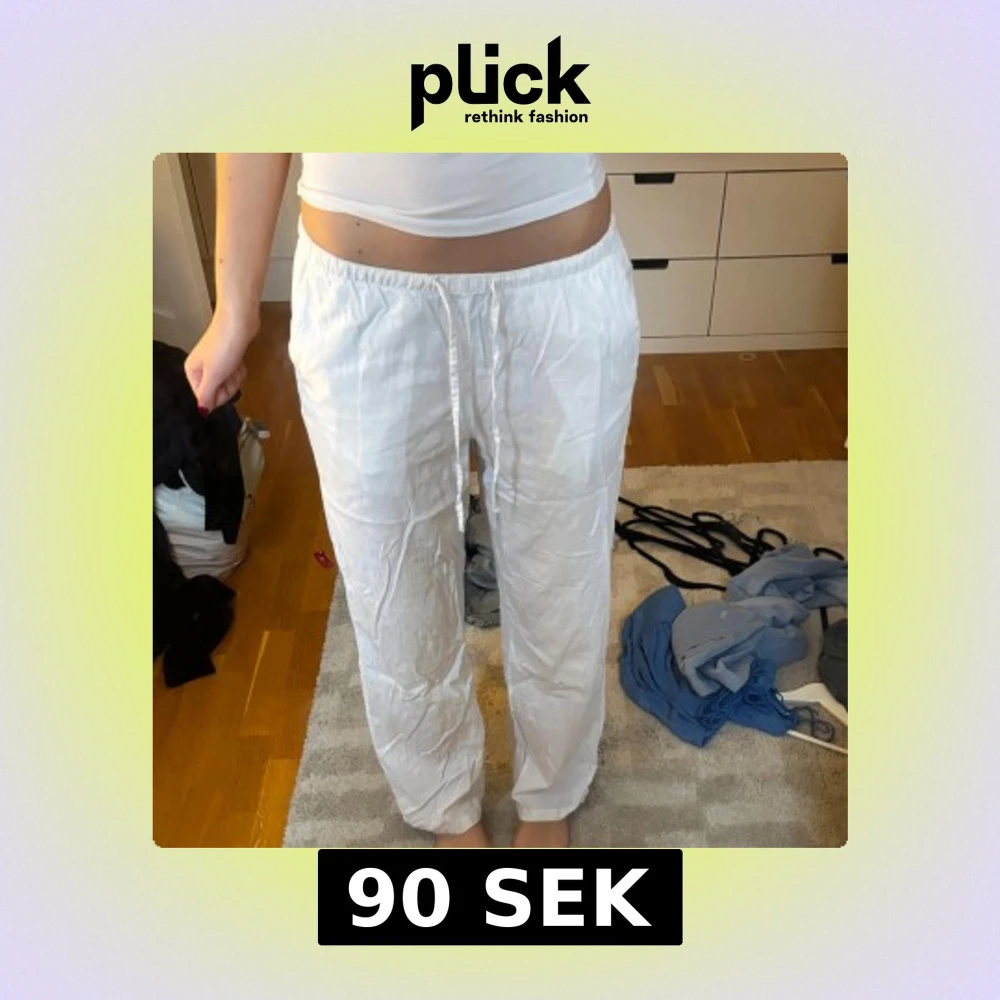 Snygga och luftiga vita linnebyxor med avslappnad passform och dragsko i midjan. Perfekta för varma dagar och ger en chill vibe. Byxorna har raka ben och elastisk midja för extra komfort.