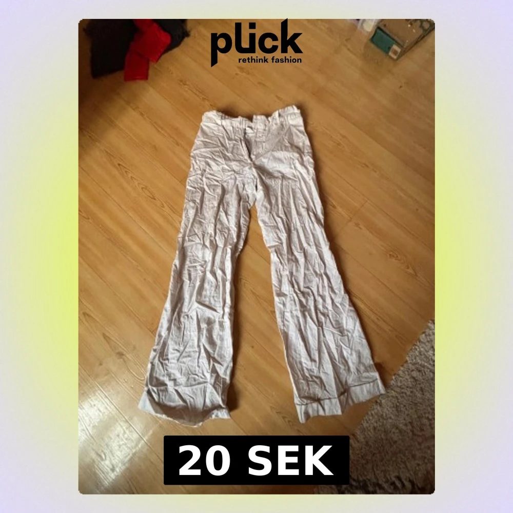 Säljer ett par vita linnebyxor med breda ben och klassisk passform. Byxorna har dragkedja och knapp framtill, samt mjukt och luftigt linnematerial som är perfekt för varmare dagar. Stilen är loose och wide, vilket ger en chill och avslappnad vibe.