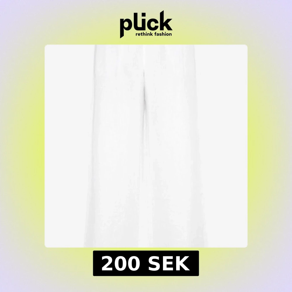 Snygga vita linnebyxor med en vid passform. Perfekta för en stilren look. Byxorna har en hyfsat låg midja och är tillverkade i ett lätt material som ger en luftig känsla. De är från Celebes if sweden orginalpris: 800kr! Helt oanvända då de är för små