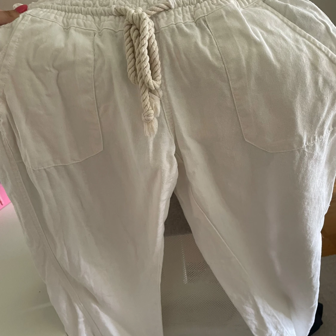 Vita linnebyxor från Roxy, inga defekter. De är upplagda och passar bra på mig som är 160. Nypris 600