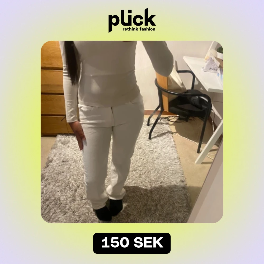Vita jeans som e low waist. Från Bikbok. W24 L32. Ser jättebra ut inget som e sönder.