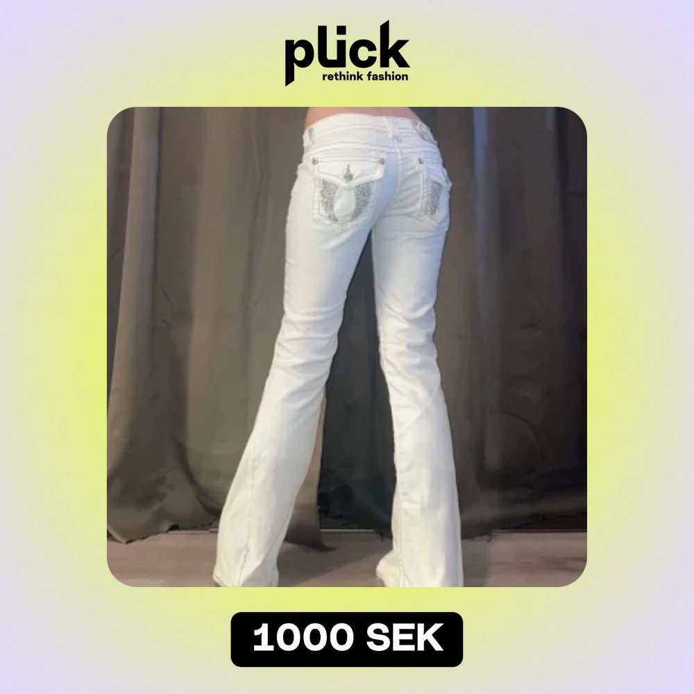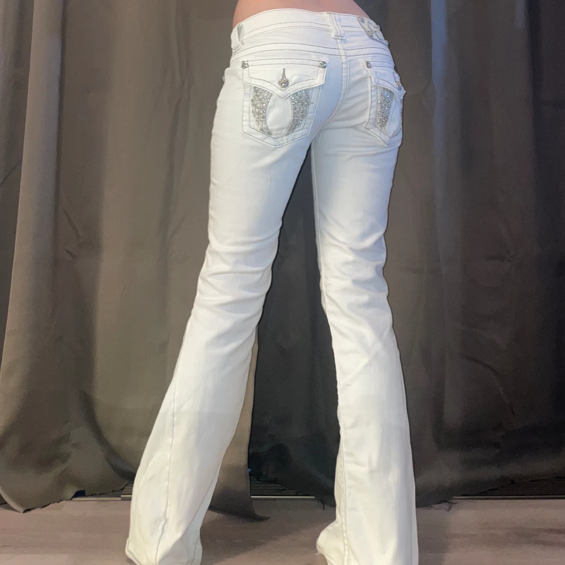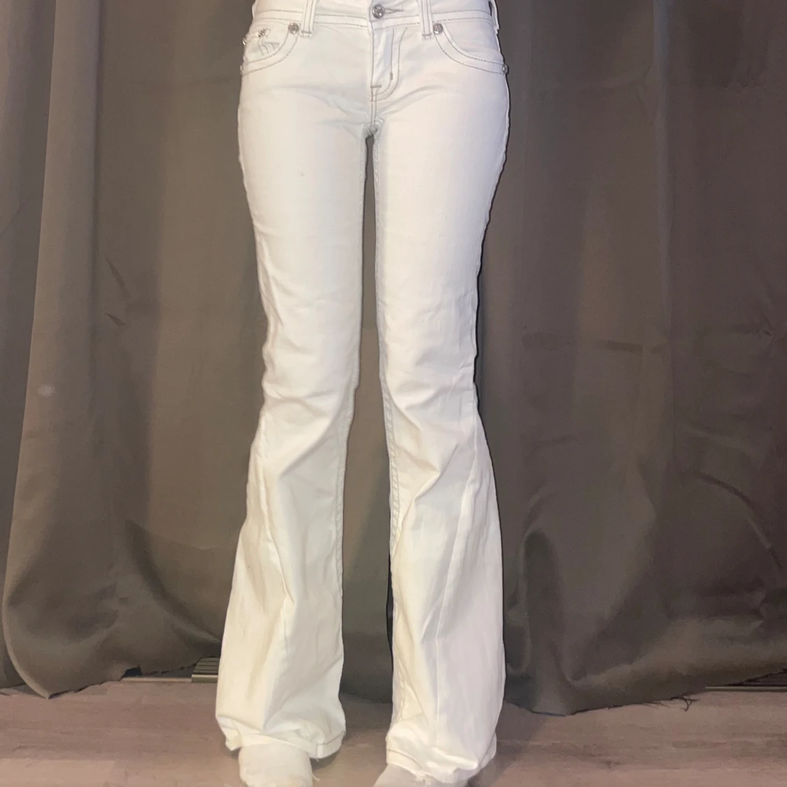 Fina vita miss me byxor ❤️ innerbenslängden är 81 cm och midjemåttet är 38cm ❤️skriv om du har någon fråga, kolla gärna in min profil, säljer en massa kläder från 2000 - tals märken, byxorna är utsydda till bootcut ❤️❤️