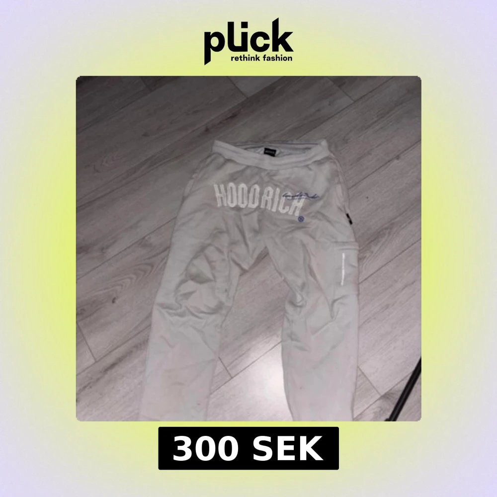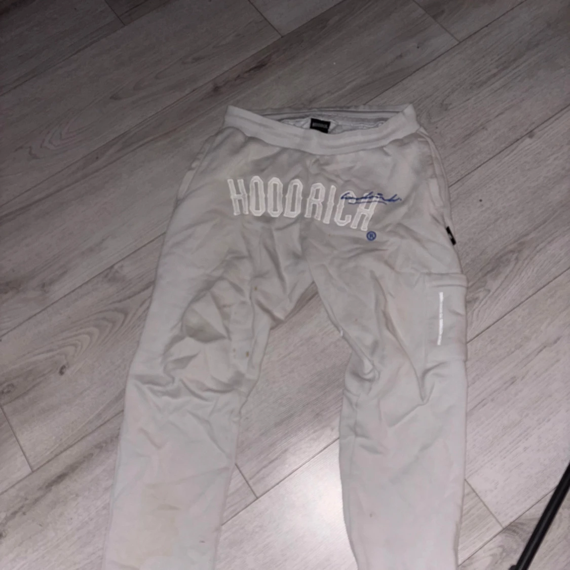 Snygga vita mjukisbyxor från Hoodrich med broderad logga framtill och cool detalj på benet. Byxorna har avslappnad passform och resår i midjan för extra komfort. Perfekta för chill dagar eller streetwear-stil.