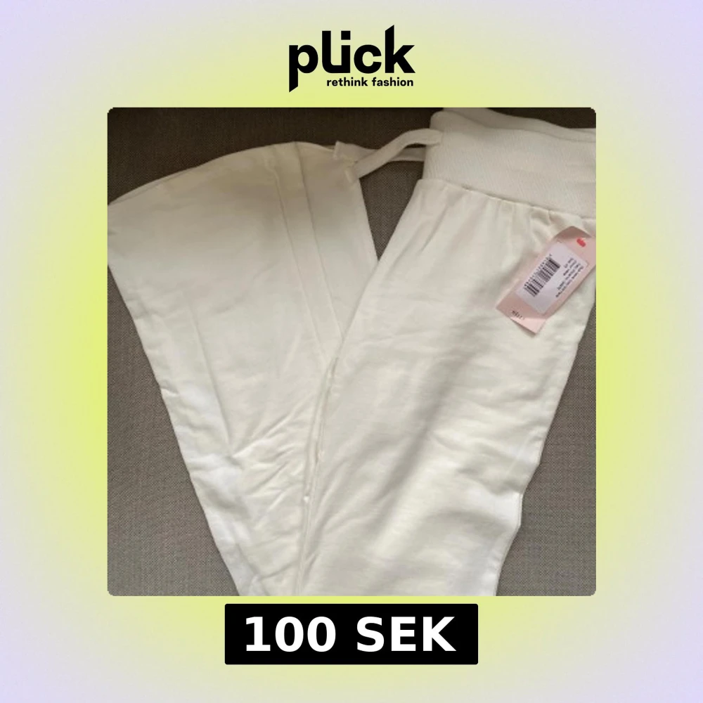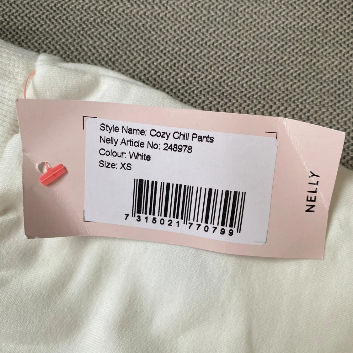 Vita tighta utsvängda mjukisbyxor från Nelly i mjukt material med bred resår och snörning i midjan. Helt oanvända med lapp kvar.