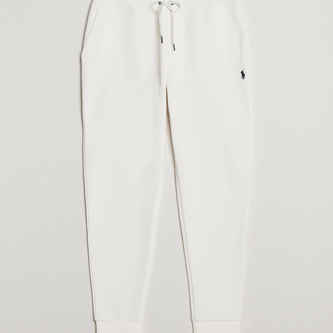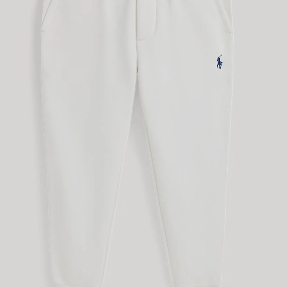 Snygga vita mjukisbyxor från Polo Ralph Lauren med klassisk broderad logga på höften. Byxorna har dragsko i midjan, ribbade muddar vid bensluten och är tillverkade i mjuk bomullsmix. Perfekta för en chill och stilren look.
