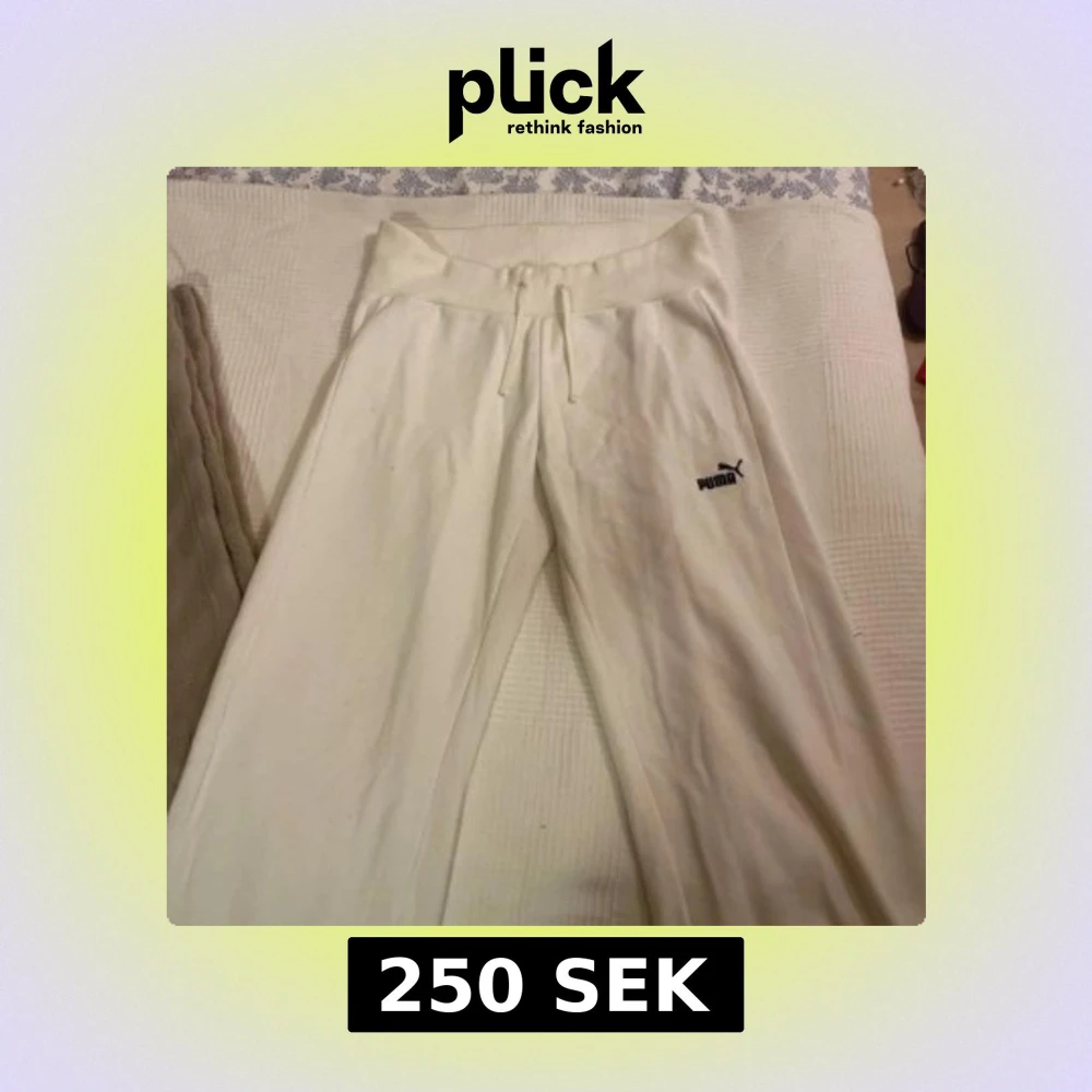 Snygga vita mjukisbyxor från Puma med bred ribbad midja och dragsko. Byxorna har en avslappnad passform, raka ben och en bakficka. Puma-logga broderad framtill.