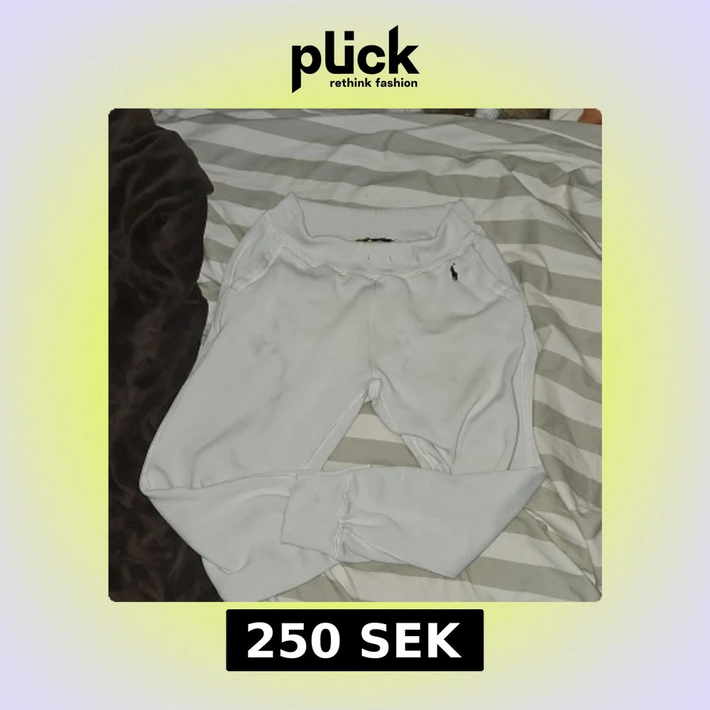 dom är i hyfsat skick förutom att dom har fläckar som jag inte lyckats få bort men går säkert om man vill tyvär inga snören till enkelt och fiksa dom är för små för mig så jag hoppas dom kan få ett nytt hem💯 .Snygga vita mjukisbyxor från Polo Ralph Lauren i storlek XS. Byxorna har ribbad midja med hål för snörning, sidofickor och den klassiska Polo-loggan broderad vid fickan. Mjukt material som är perfekt för chill eller träning.tveka inte på att skriva😆
