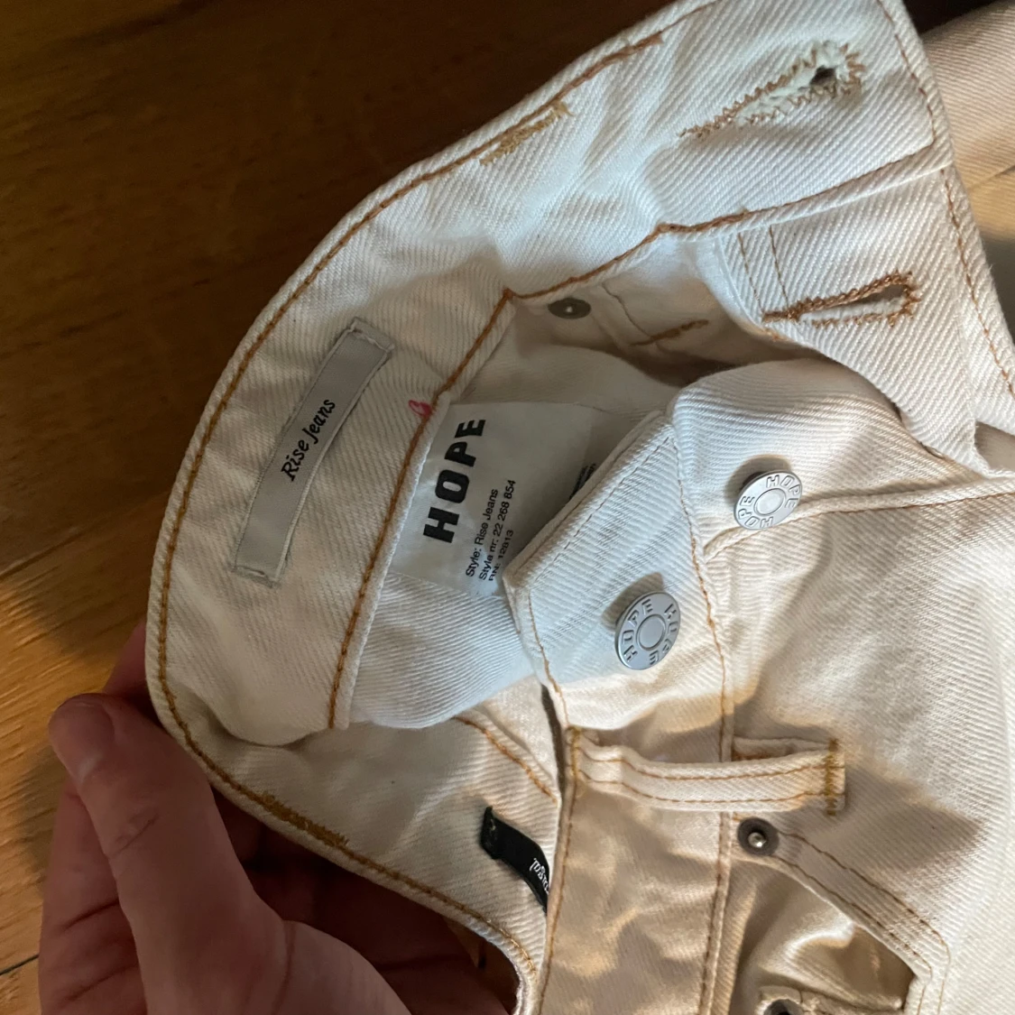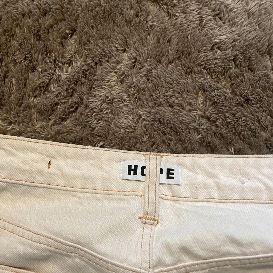 Snygga vita jeans från HOPE med rak passform och klassisk femficksdesign. Byxorna är högmidjade och tillverkade i kraftig bomull. Perfekta för dig som gillar stilrena och minimalistiska plagg med en modern twist.