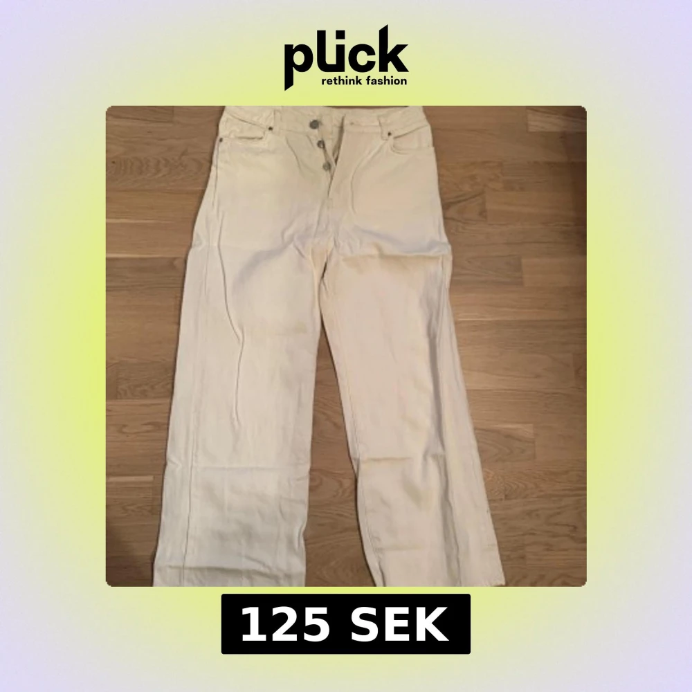 Snygga vita jeans från Never Denim med raka ben och klassisk femficksmodell. Jeansen har hög midja, knäppning med knappar och är tillverkade i kraftig bomull. Perfekta för en clean och stilren look.