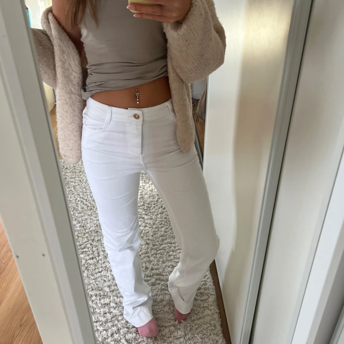 Säljer ett par helt nya vita jeans från Zara med raka ben och medelhög midja. De är helt oanvända och endast testade! Jag är 168cm lång för referens, priset kan diskuteras 🩷🩷🩷