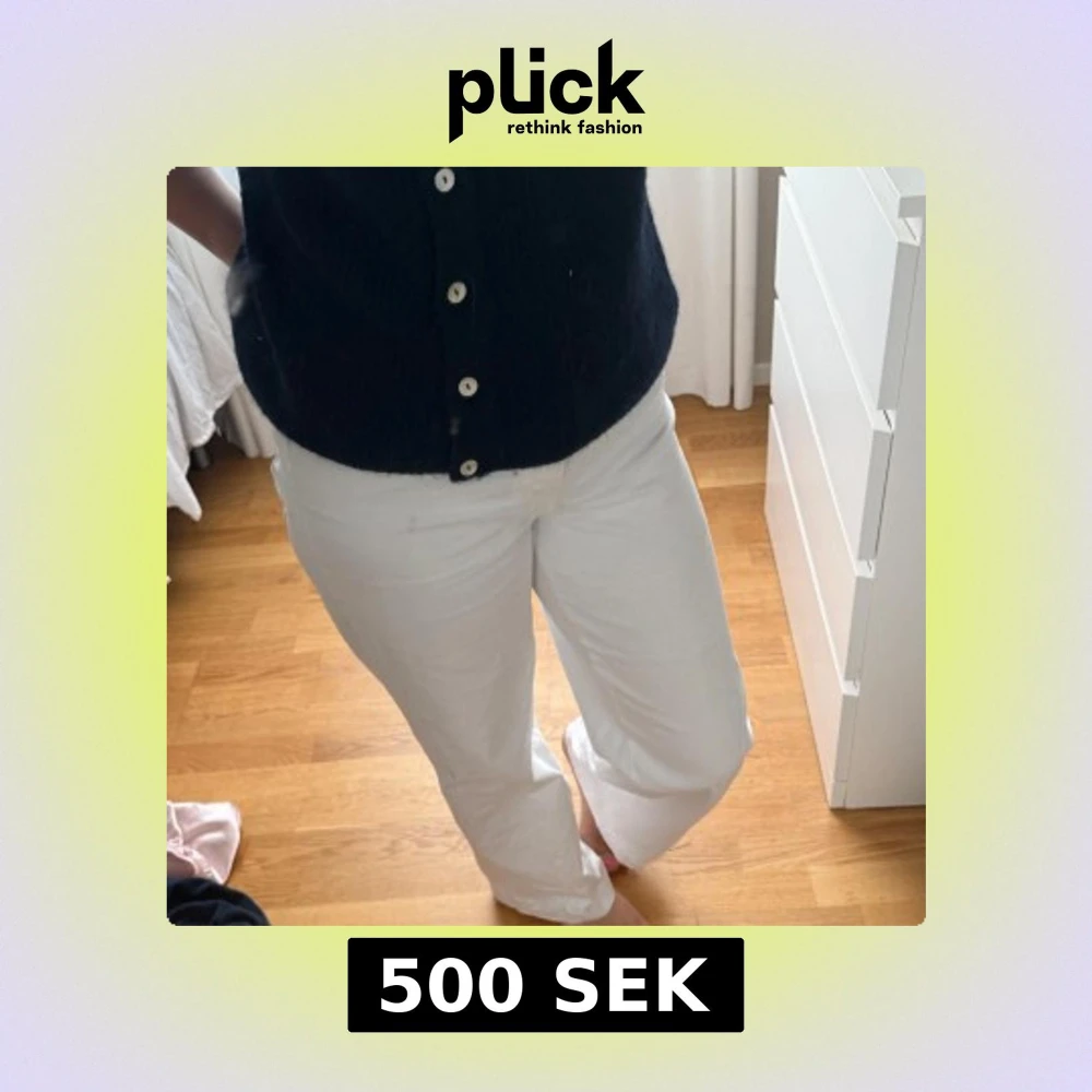 Säljer ett par vita jeans med rak passform. Perfekta för dig som gillar en stilren och fräsch vibe.