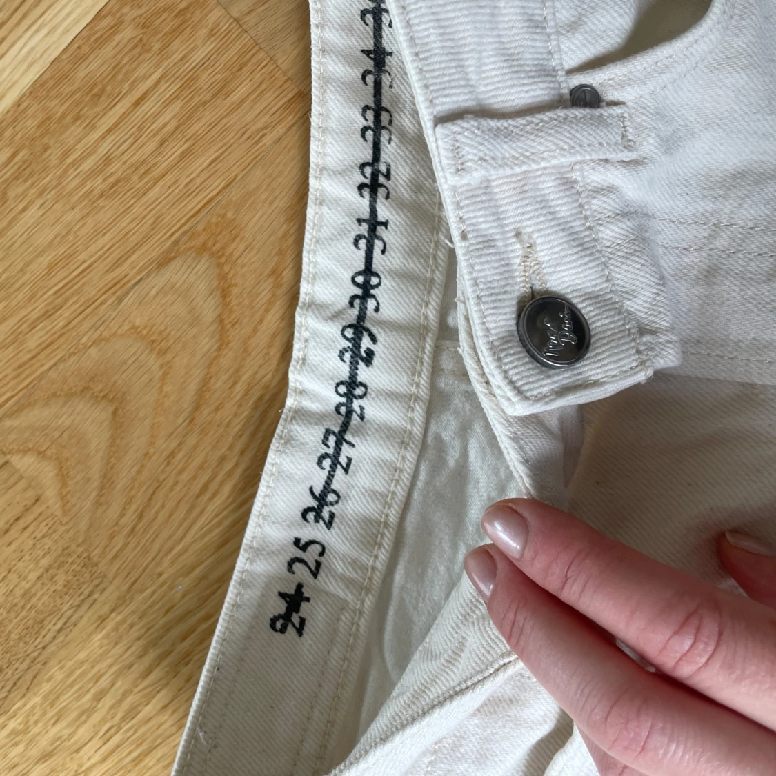 Säljer ett par vita jeansbyxor med raka ben och hög midja.Perfekta för en clean och stilren look. Använd 1-2ggr