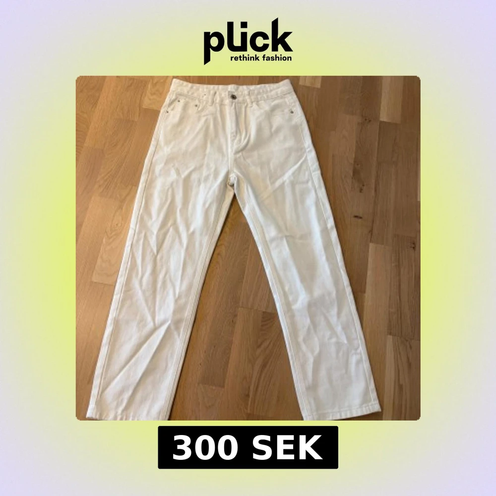 Snygga vita jeansbyxor med raka ben och klassisk femficksdesign. Storlek M men skulle uppskatta längden till 32