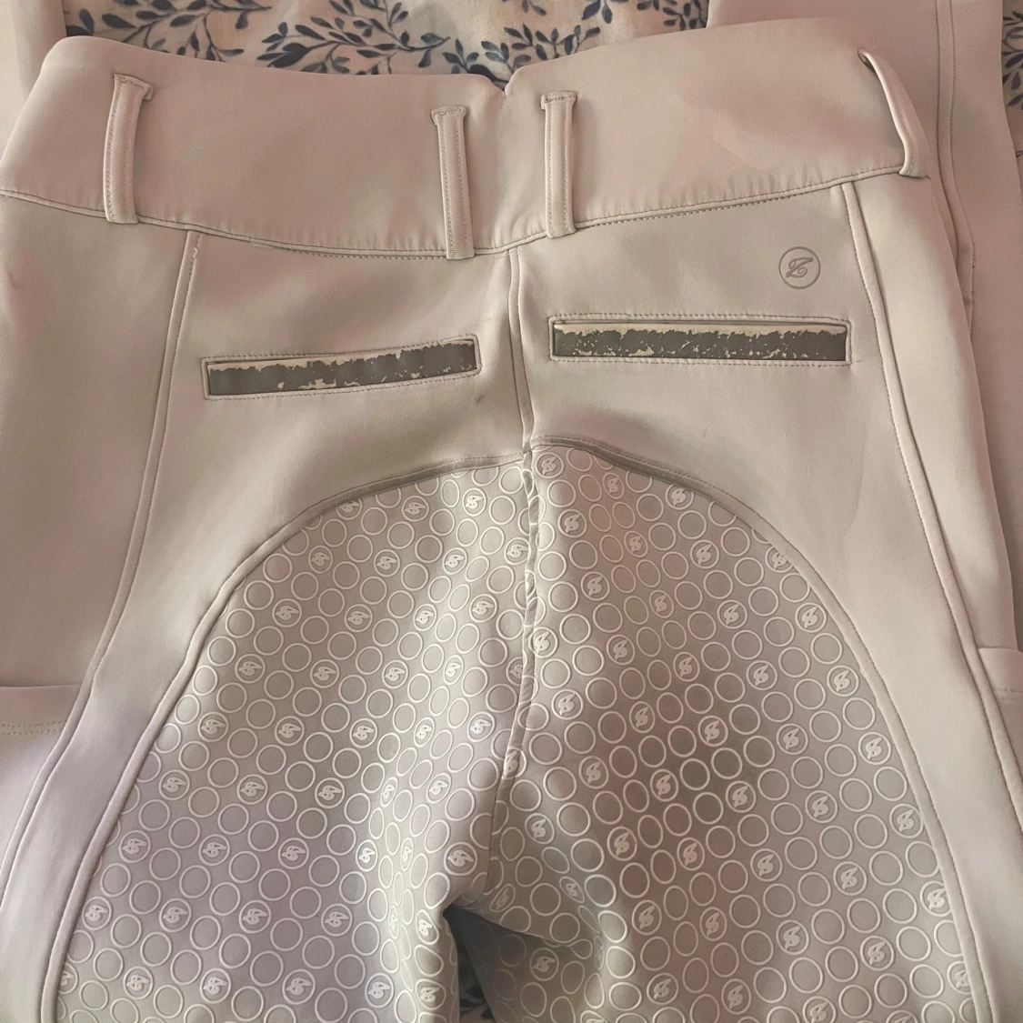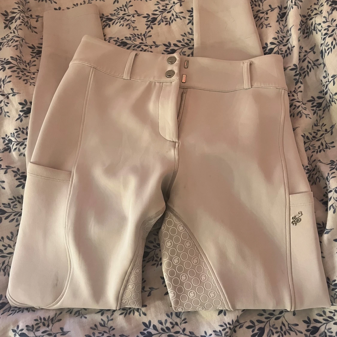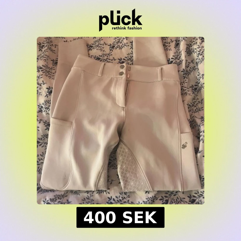 Snygga vita ridbyxor från ZacZess i storlek M. Byxorna har hög midja, silikongrepp i sätet och insida lår för extra fäste, samt praktiska fickor på sidorna. Stängs med dragkedja och dubbla knappar. Perfekta för ridning och stilrena i stallet.