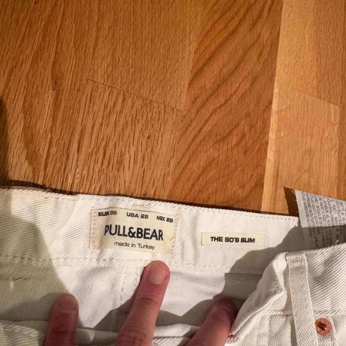 Snygga vita jeans från Pull&Bear i modellen 'The 90's Slim'. De har en klassisk femficksdesign, knappgylf och smal passform som sitter riktigt schysst. Perfekta för dig som gillar en clean och stilren look. Materialet är mjukt och bekvämt bomullstyg.