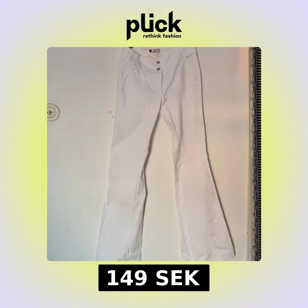 Snygga vita byxor från Levi's med bootcut passform och två knappar framtill. Byxorna har hög midja och är tillverkade i bomull, vilket gör dem både bekväma och stilrena. Perfekta för dig som vill ha en clean och fräsch look.