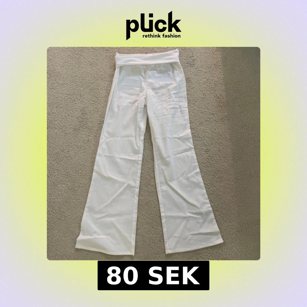 Snygga vita linnebyxor från H&M med låg midja och vida ben. Byxorna har en mjuk, stretchig linning och är tillverkade i ett lätt och luftigt linnematerial. Helt nya med prislapp. Säljer då dem tyvärr var för små🥺