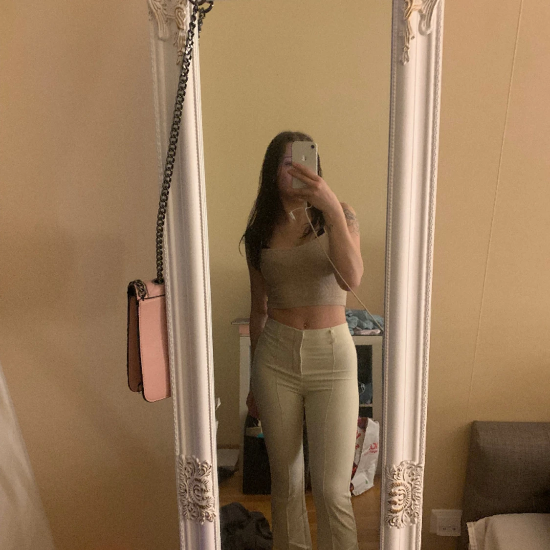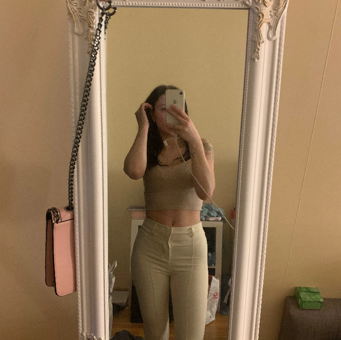 Krämvita kostymbyxor från bershka, använt men i fint skick säljer då de blivit för små för mig💌