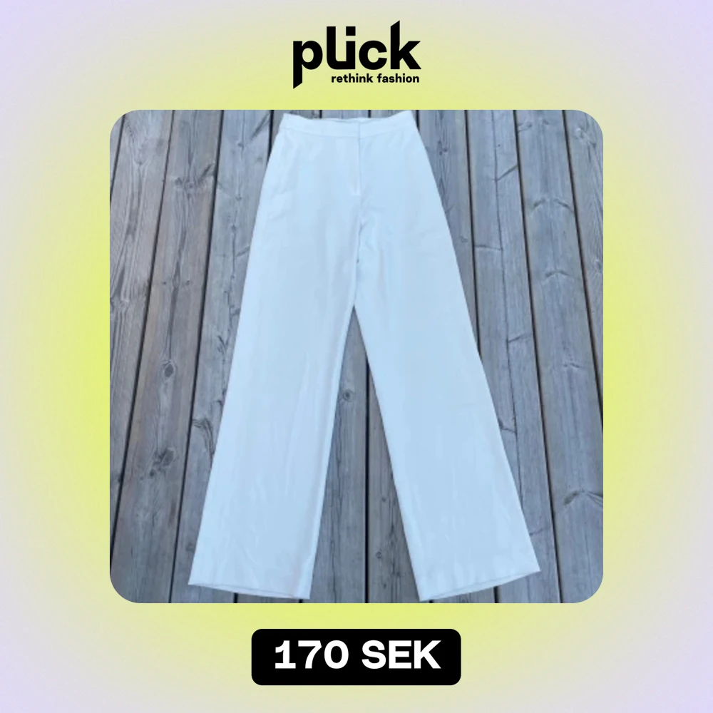 Ett par supersnygga vita kostymbyxor i storlek 34. De är i jättebra skicka då de är använda fåtal gånger. Säljer då jag har köpt nya. Priset kan diskuteras 💖