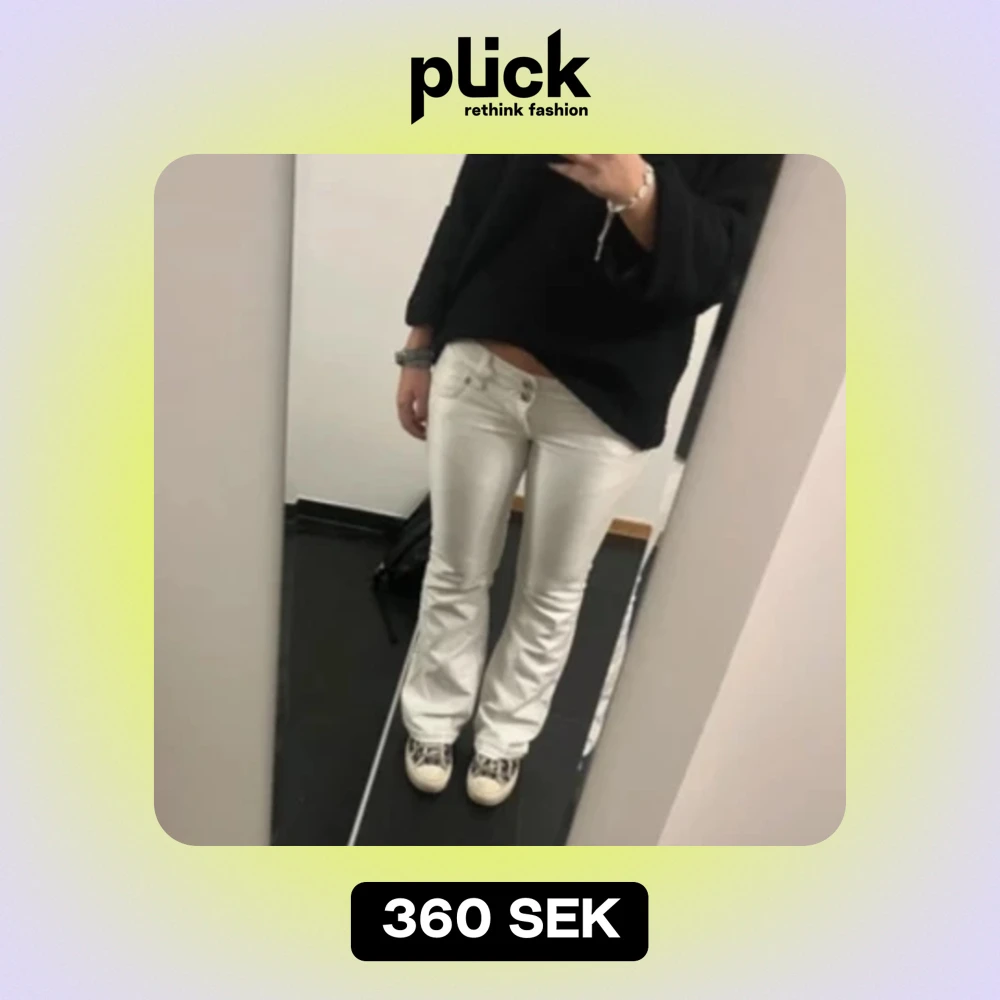 Så snygga vita lågmidjade bootcut jeans! De är bra kvalitet men de har några jättesmå fläckar längst ner på benen, inget man tänker på. Midjemått 38 och innerbenslängd 75❣️