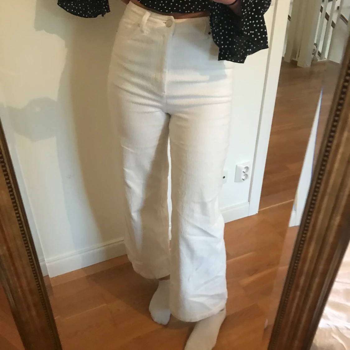 Vita Manchester wide leg jeans från Gina tricot. Strl 34 passar s. Köptes för ca 400-500kr 100kr eller buda. Jag på bilden är ca 175 dom är något korta, väldigt höga i midjan!⚡️