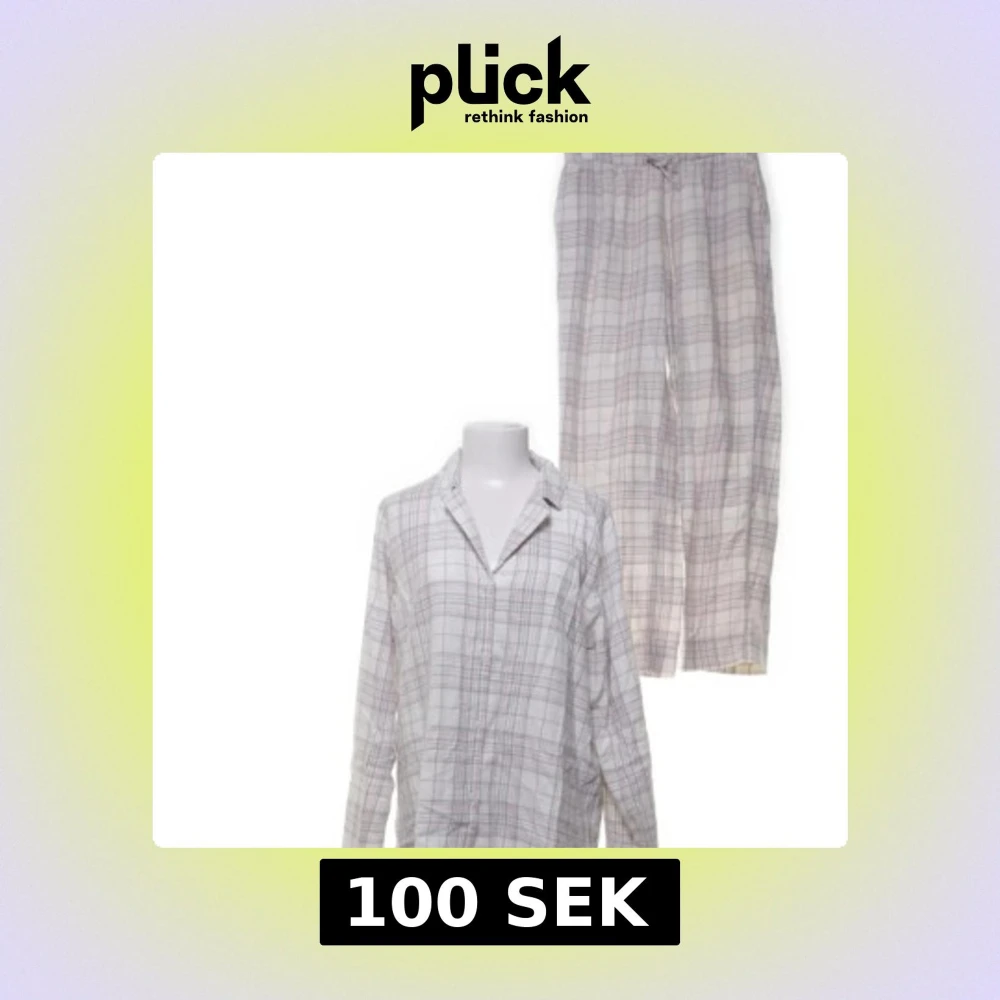 Luftiga vita byxor och skjorta med rutigt mönster i grått och rosa. Byxorna har en avslappnad passform och dragsko i midjan för extra komfort.