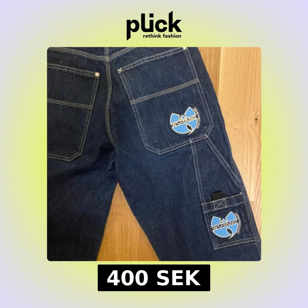 Snygga mörkblå äkta Wu Wear jeans (wu tang clan) hade passat någon mellan 165-160 ish. Inpcinip oanvända