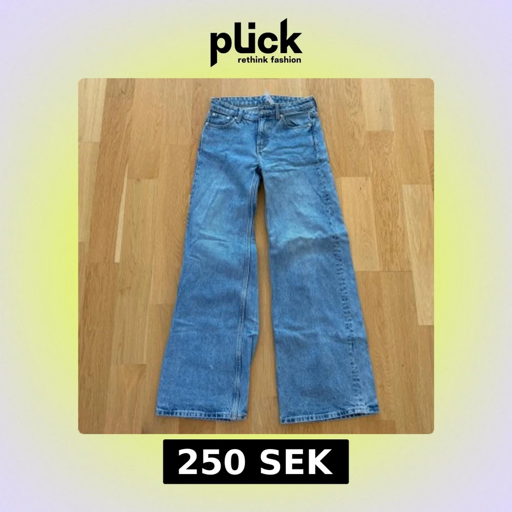 Säljer ett par klassiska blå jeans med breda ben och normal passform. Byxorna har fem fickor, bälteshällor och stängs med dragkedja och knapp. Perfekta för dig som gillar en avslappnad och trendig stil. Storlek 24/32 pris 250+frakt